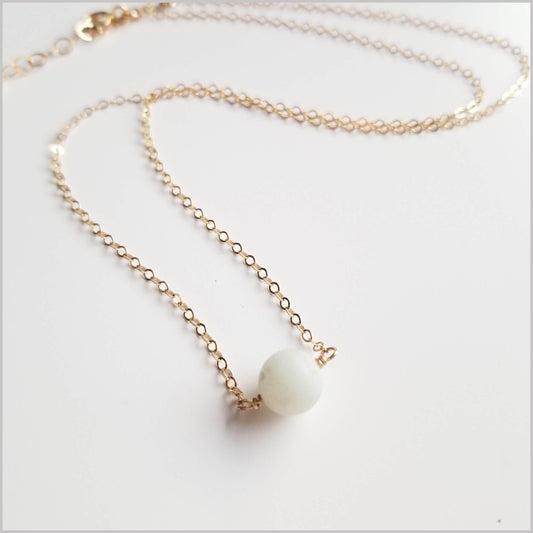 Natural round 8 MM bead necklaces . 18.5" - 21" chain available in both 925 Sterling Silver and 14 Karat Gold Fill.