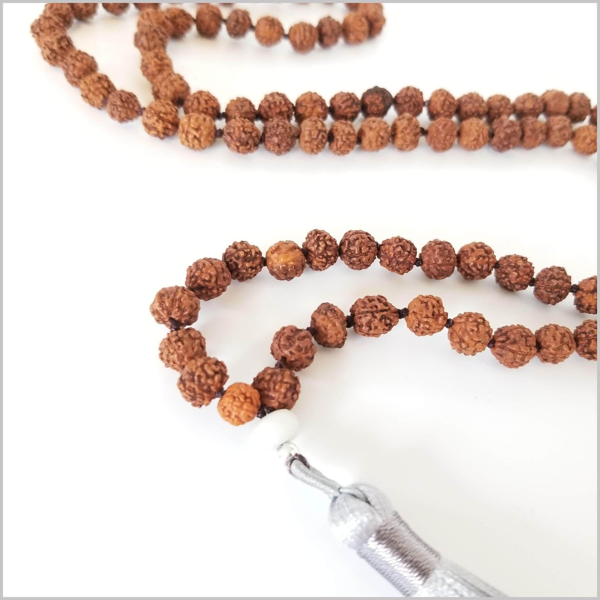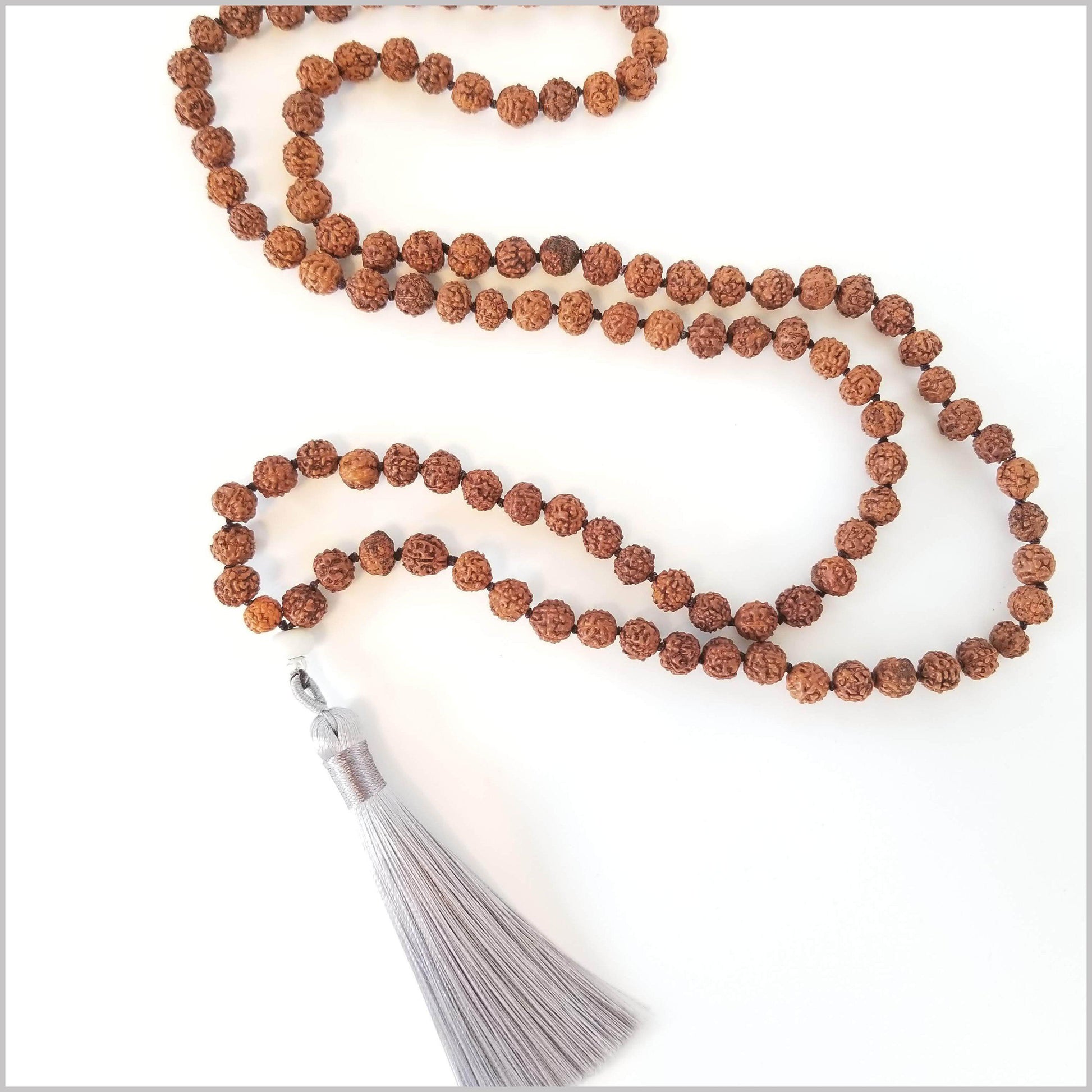 - 8MM Rudraksha, 6MM gemstone bead. Traditionally knotted.
