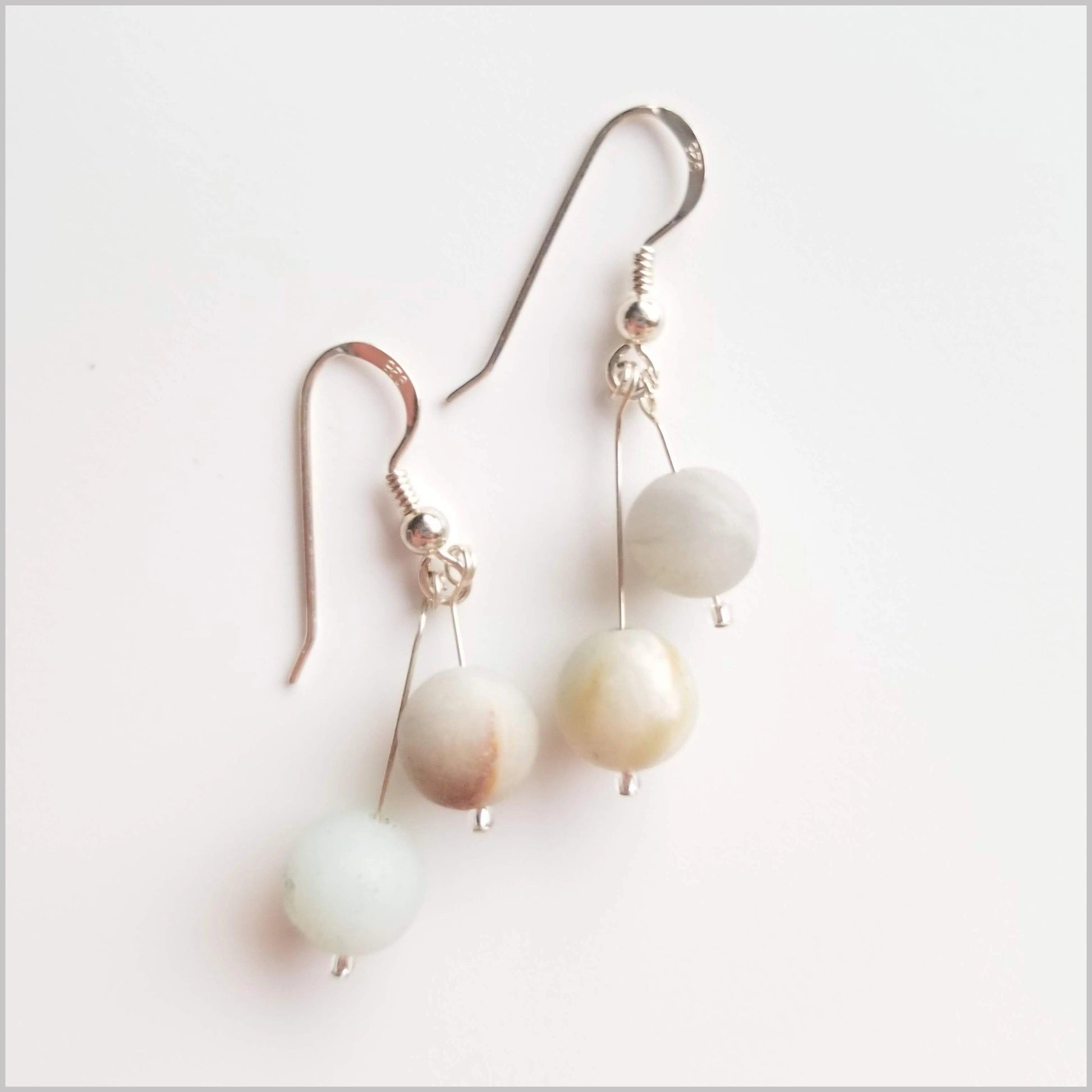 These elegant dangles are handmade with natural Matte Amazonite.