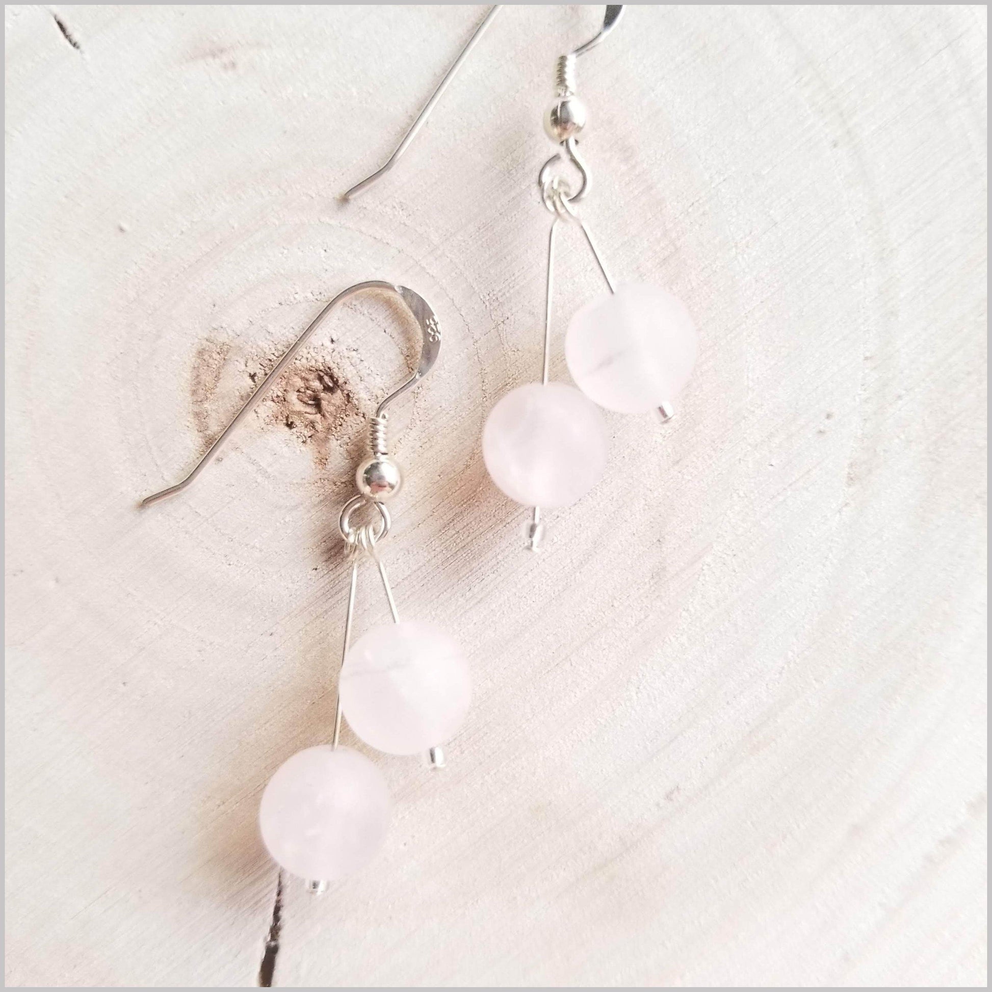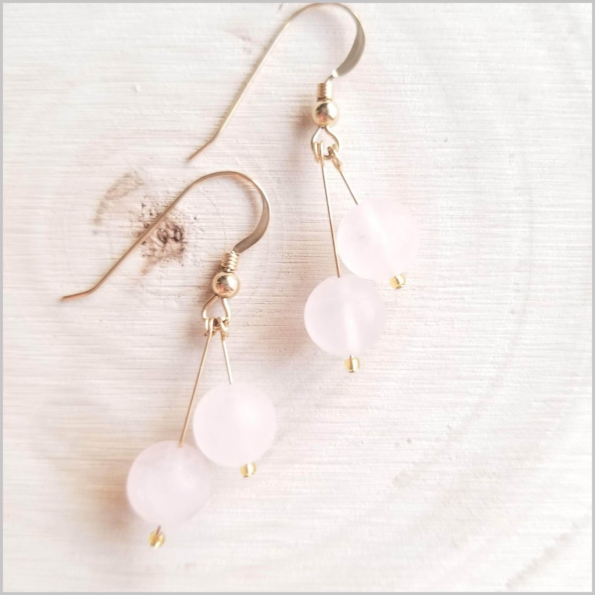 These elegant dangles are handmade with natural Matte Rose Quartz.