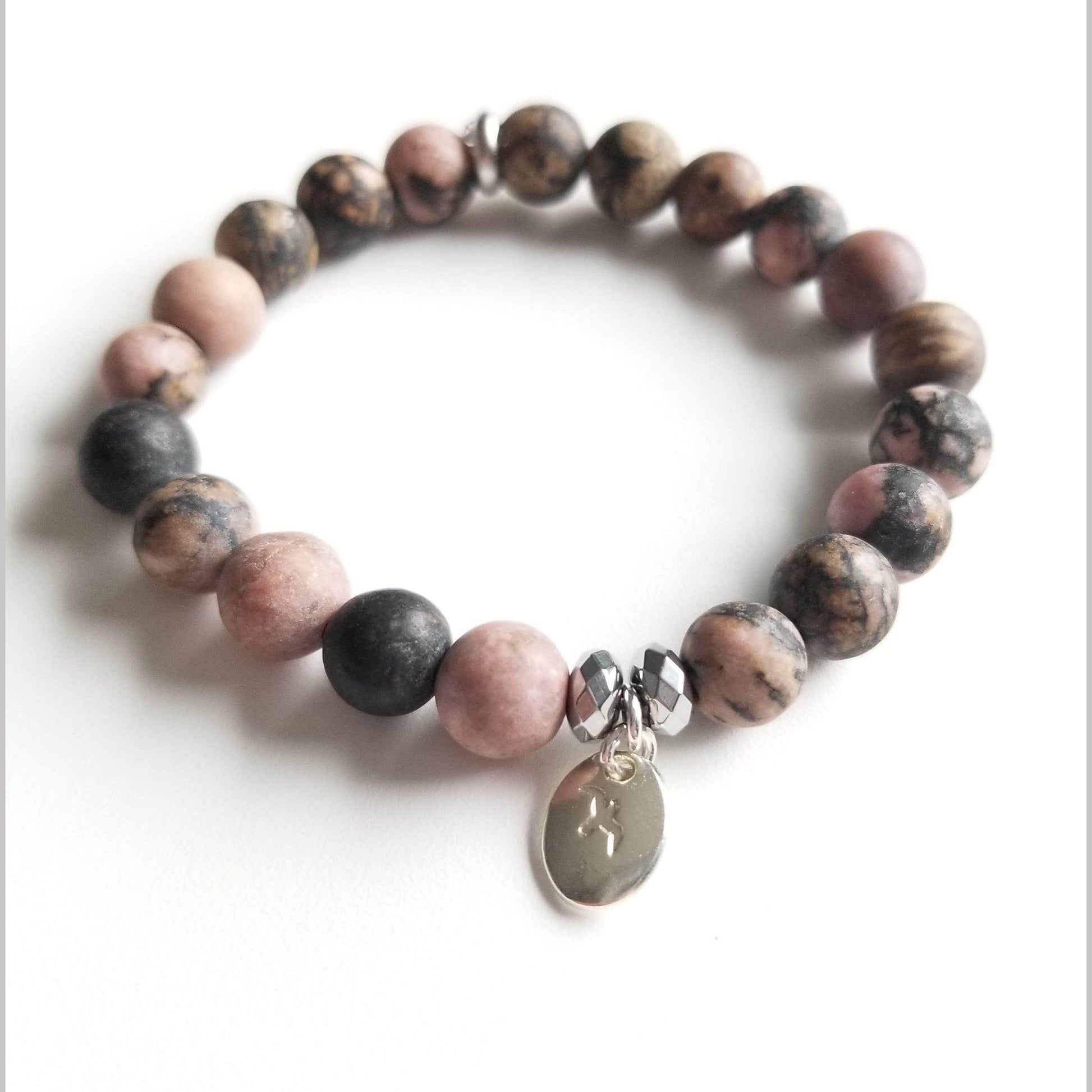 This beautiful Aromatherapy Bracelet is handmade with natural Rhodonite Beads.