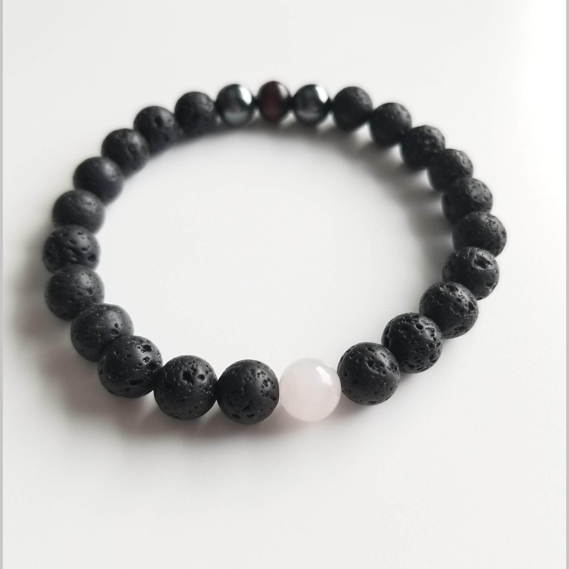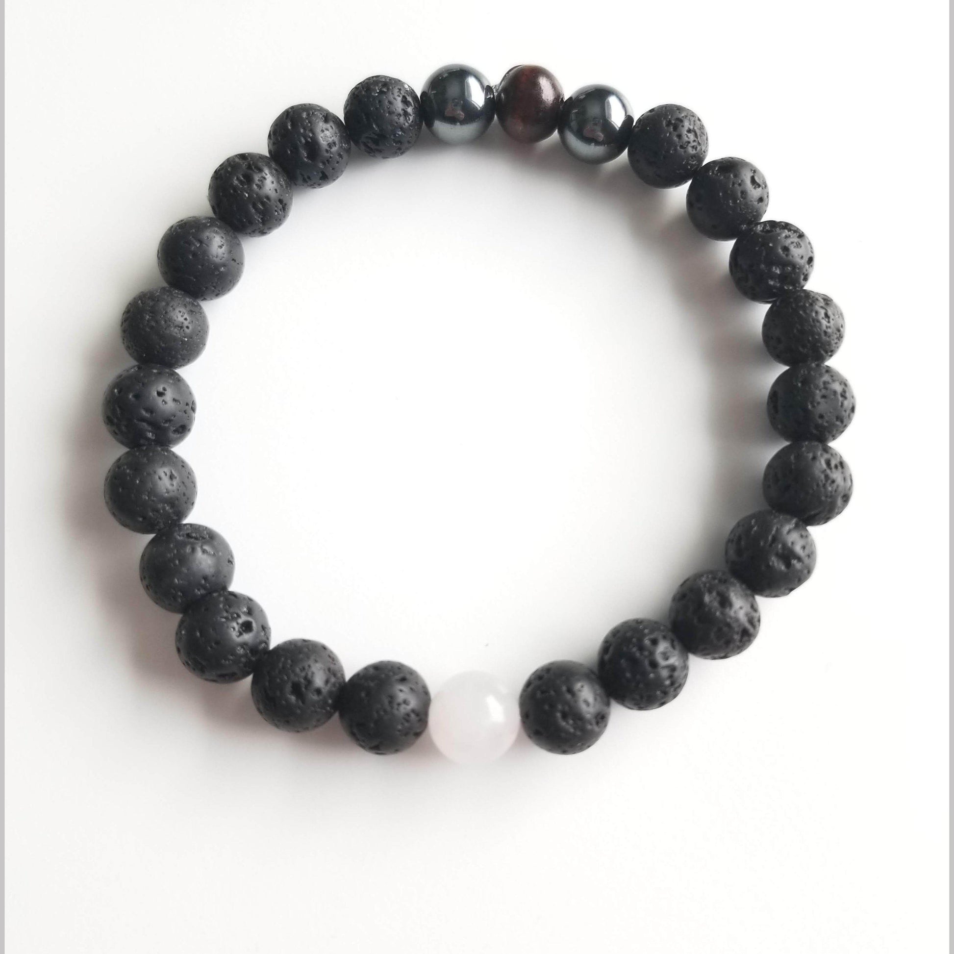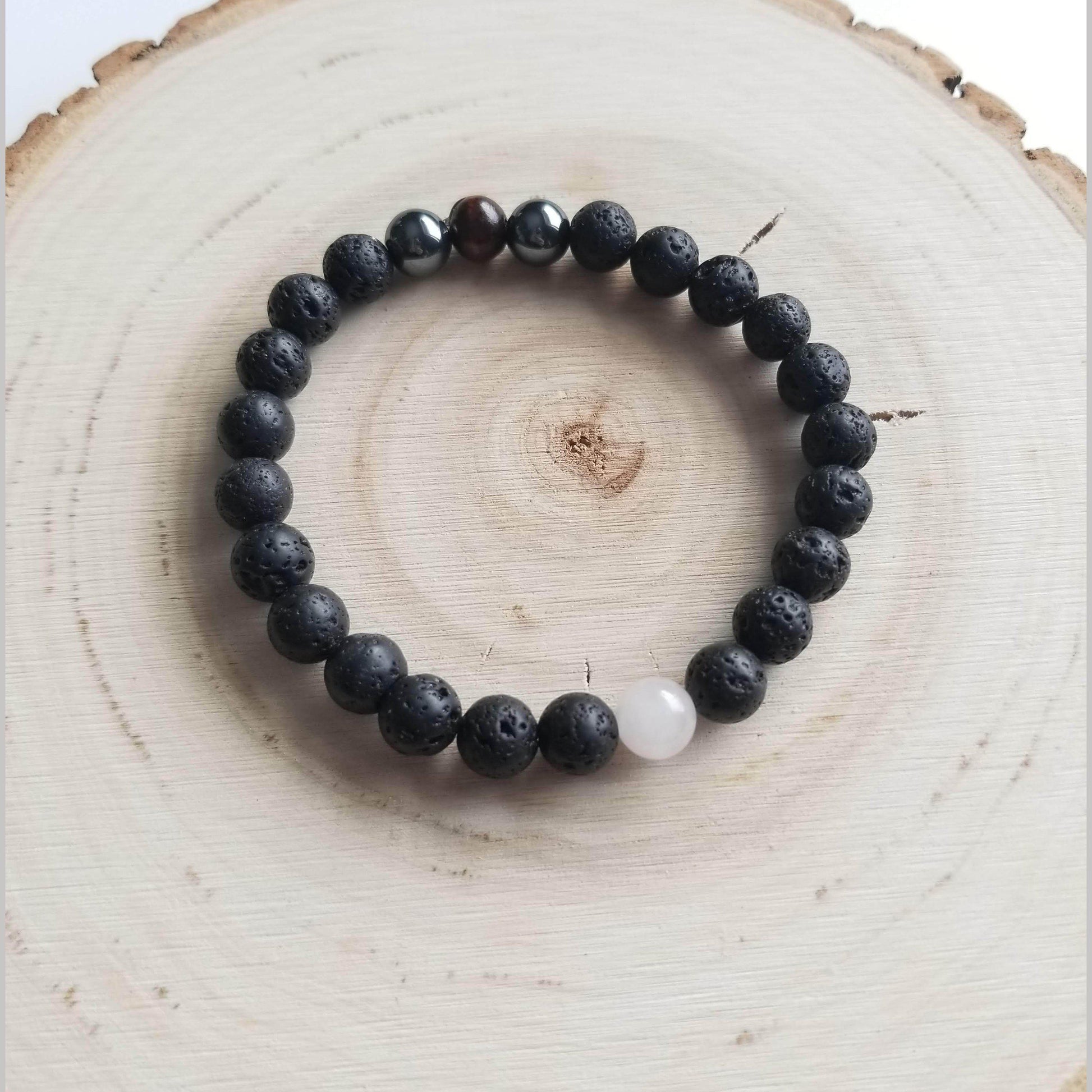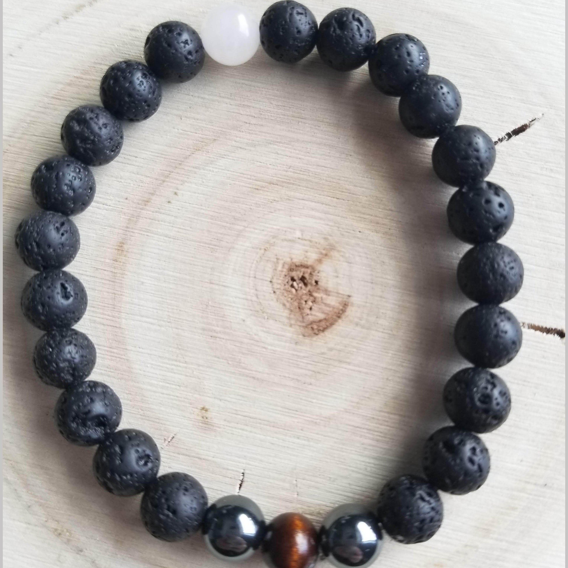 This clean and muted Bracelet is handmade with natural Moonstone and Lava Beads.