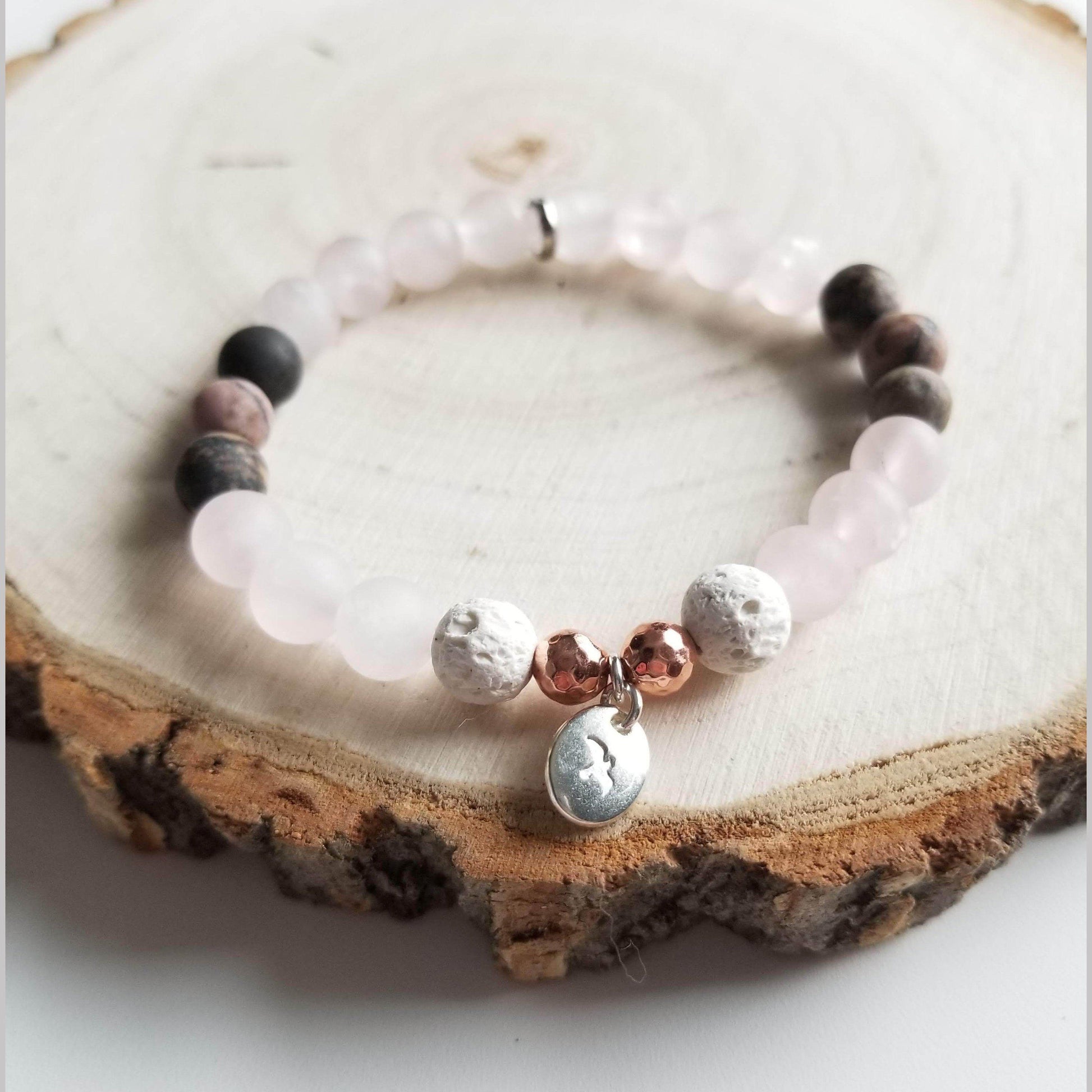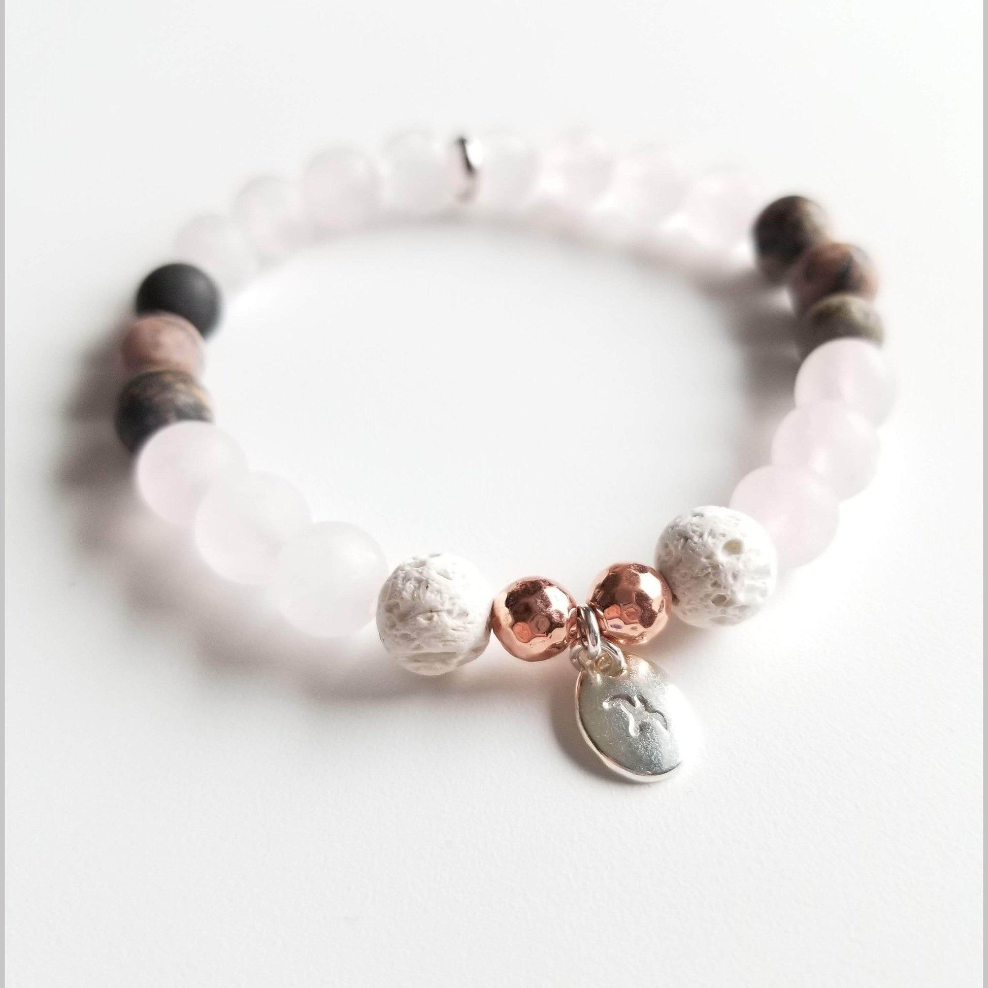 This beautiful Aromatherapy Bracelet is handmade with natural Rose Quartz and Rhodonite Beads.
