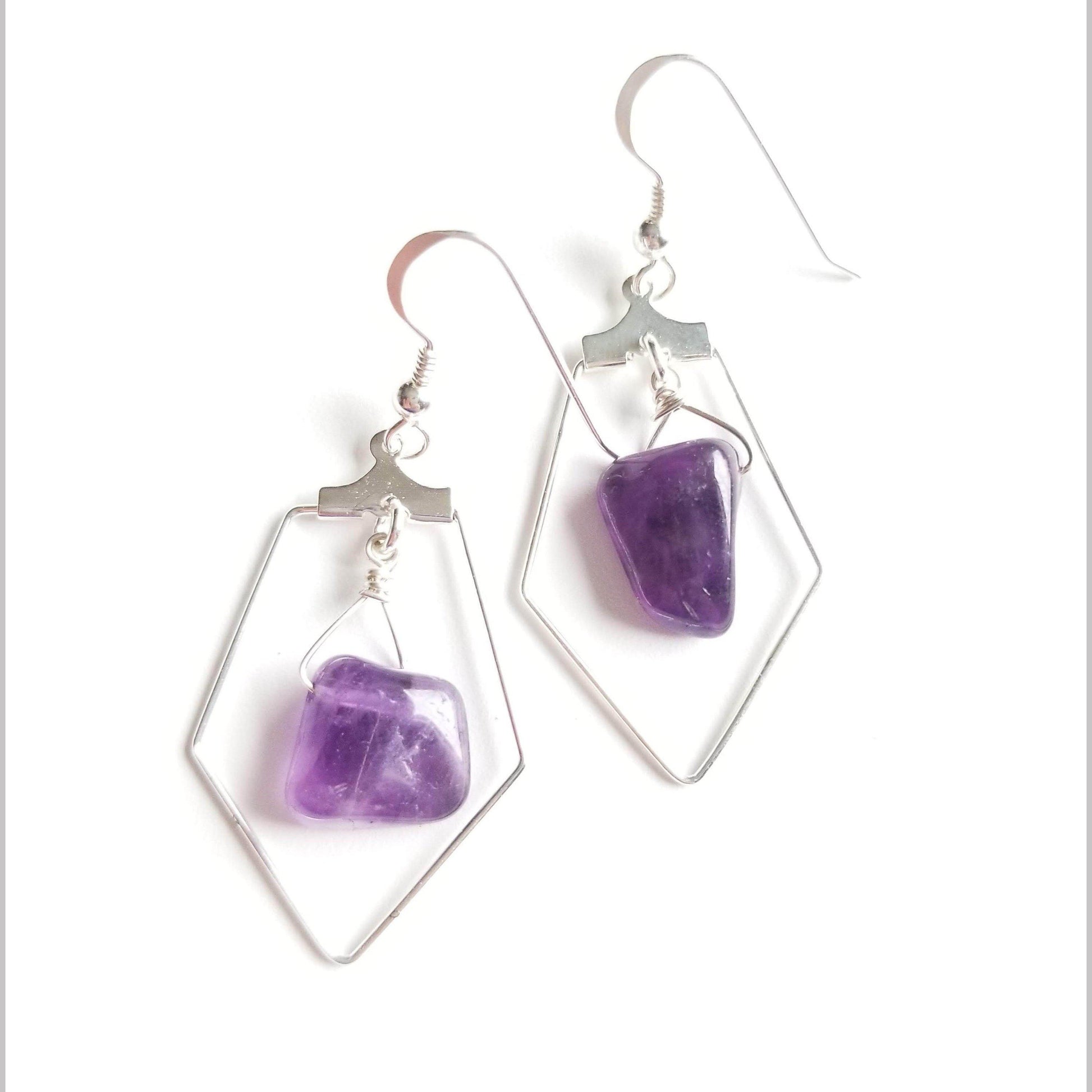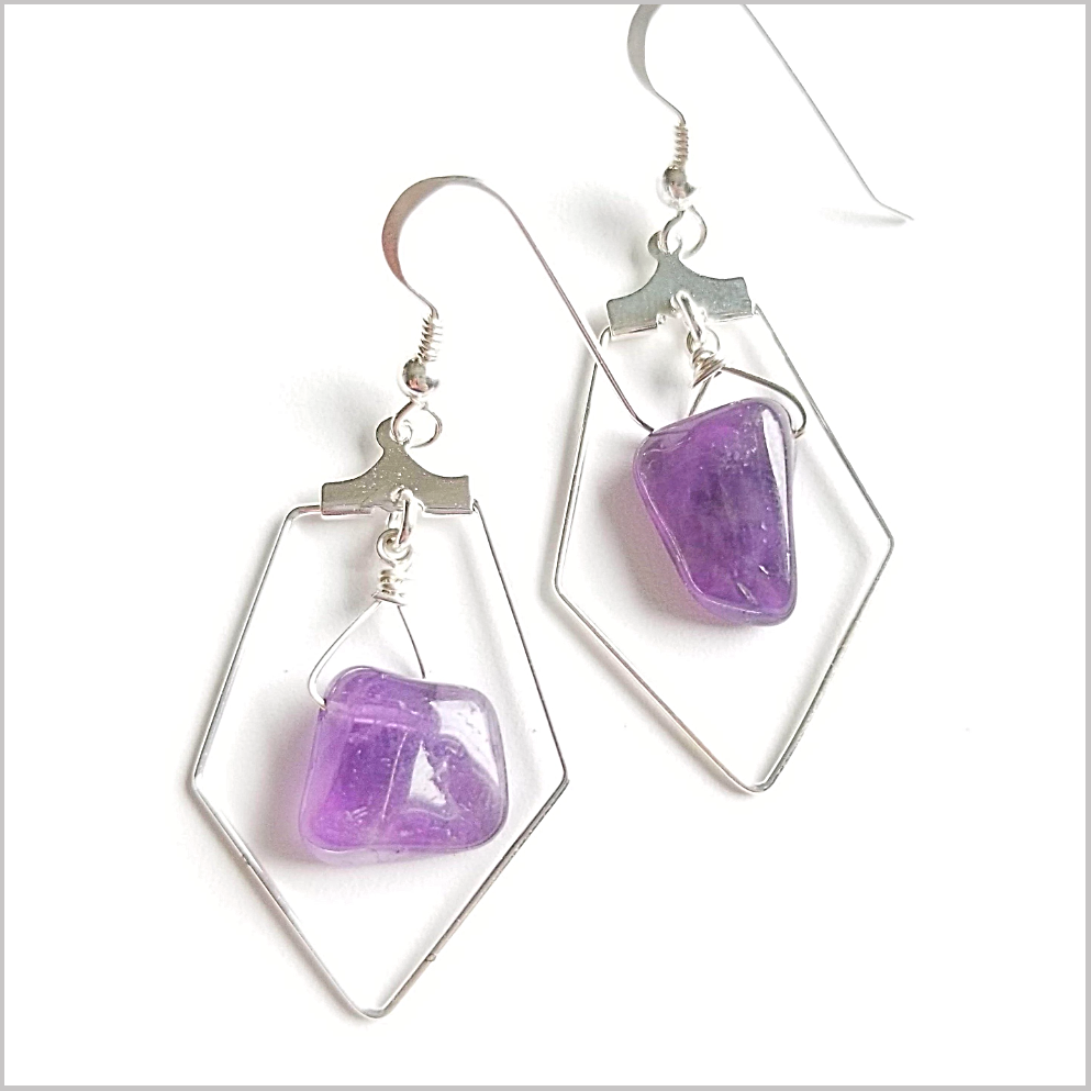 These striking earrings are handmade with natural Amethyst.