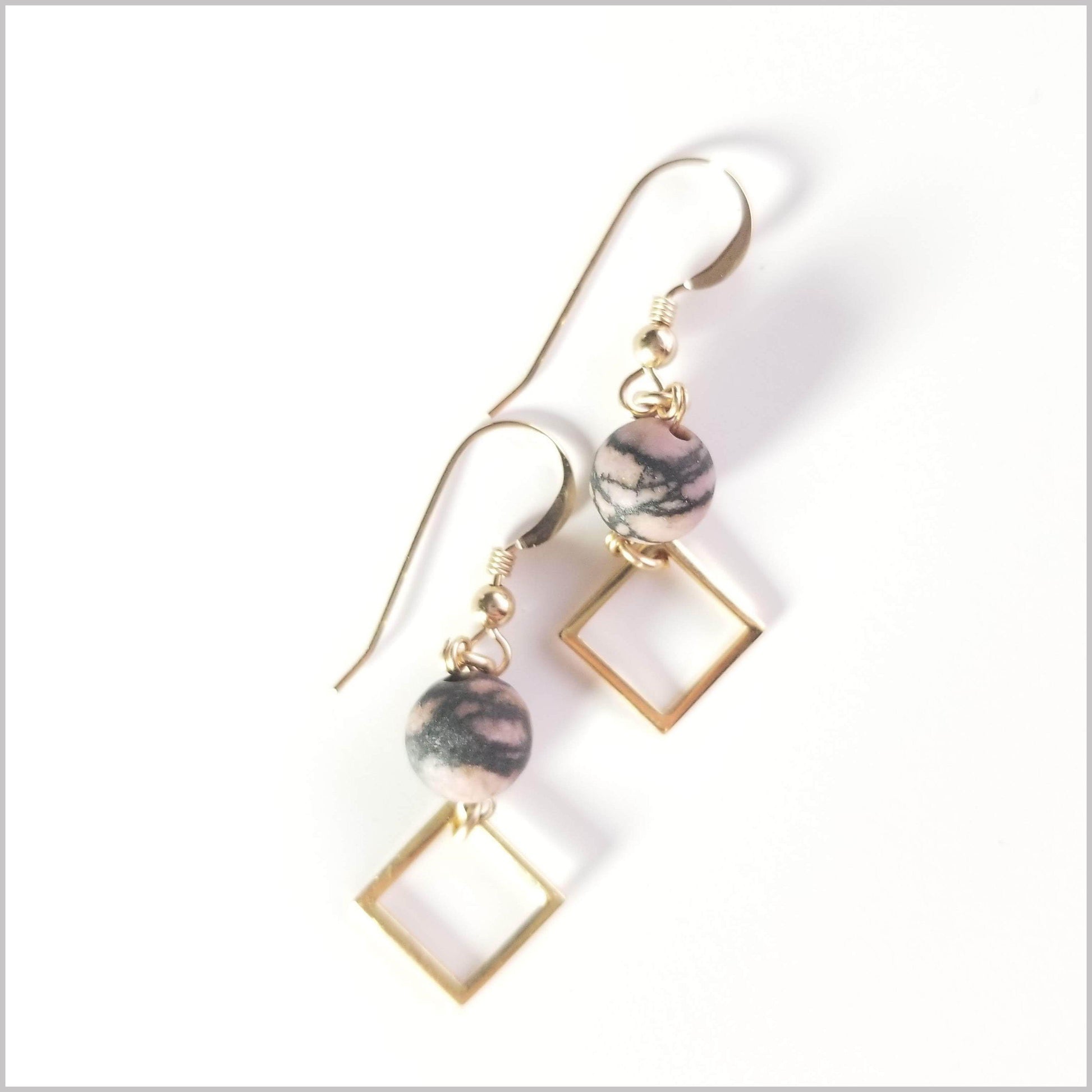 These geometric earrings showcase a variety of crystals. Combine the beautiful healing benefits of the stones with these fun and fashionable squares. You are ready to take on your everyday life with a more guided and positive outlook.
