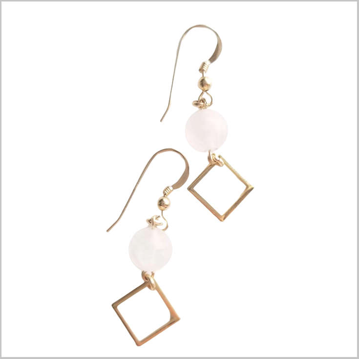 These modern dangles are handmade with natural Matte Rose Quartz.