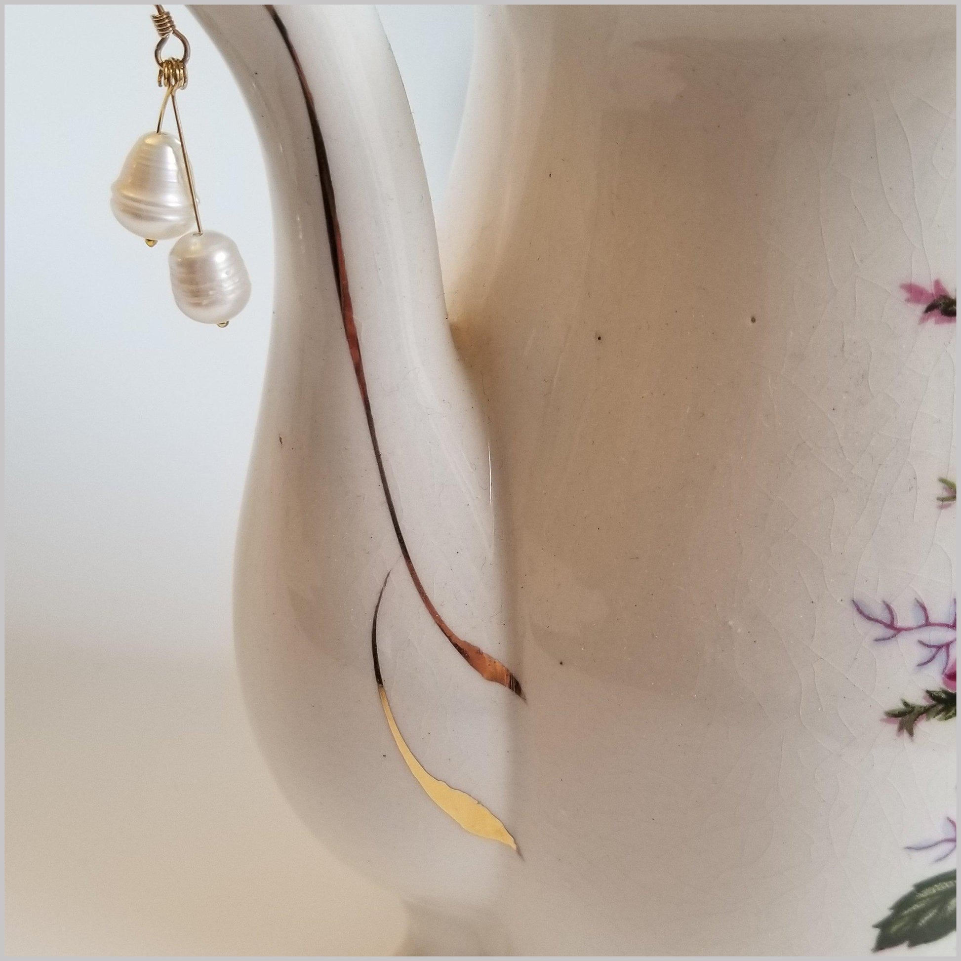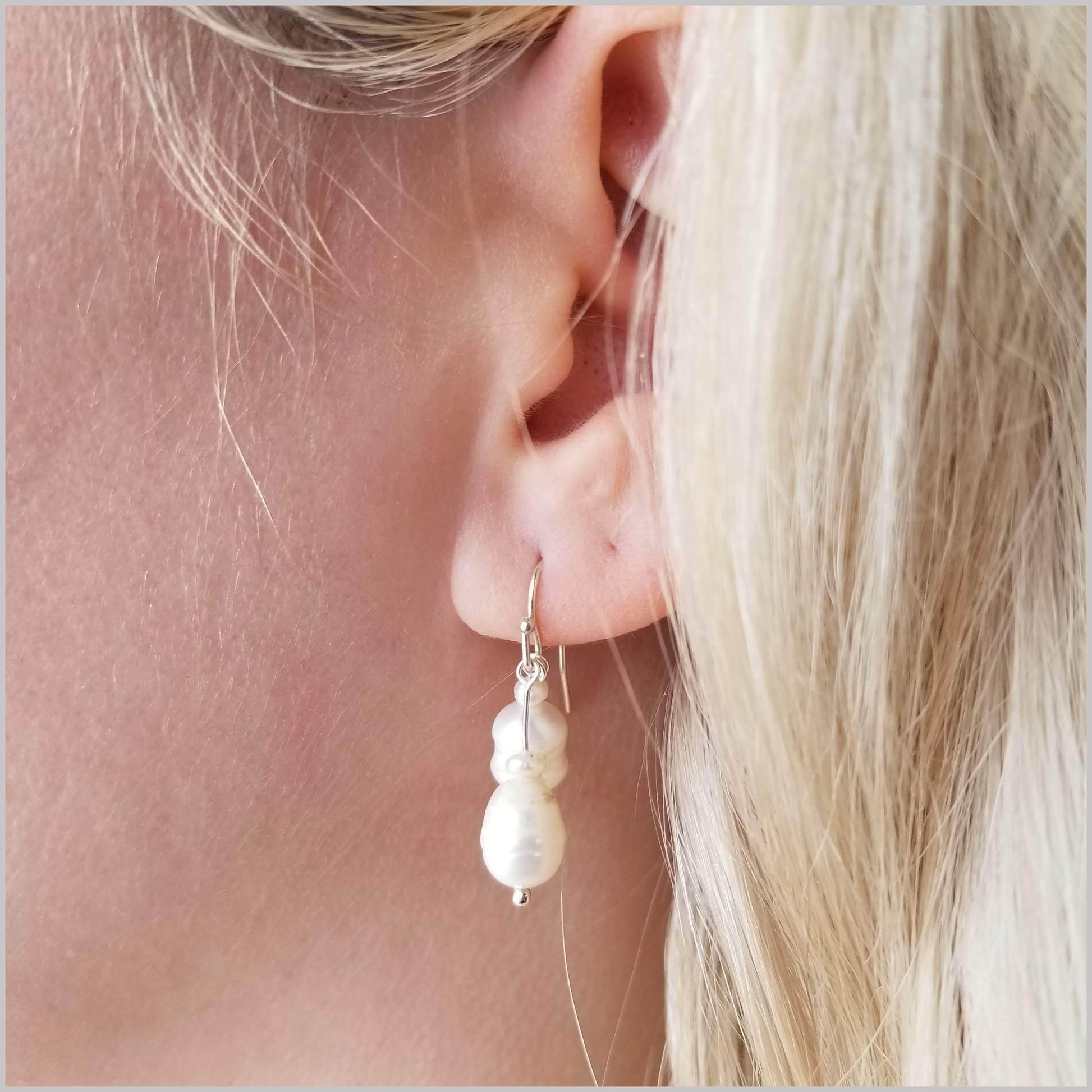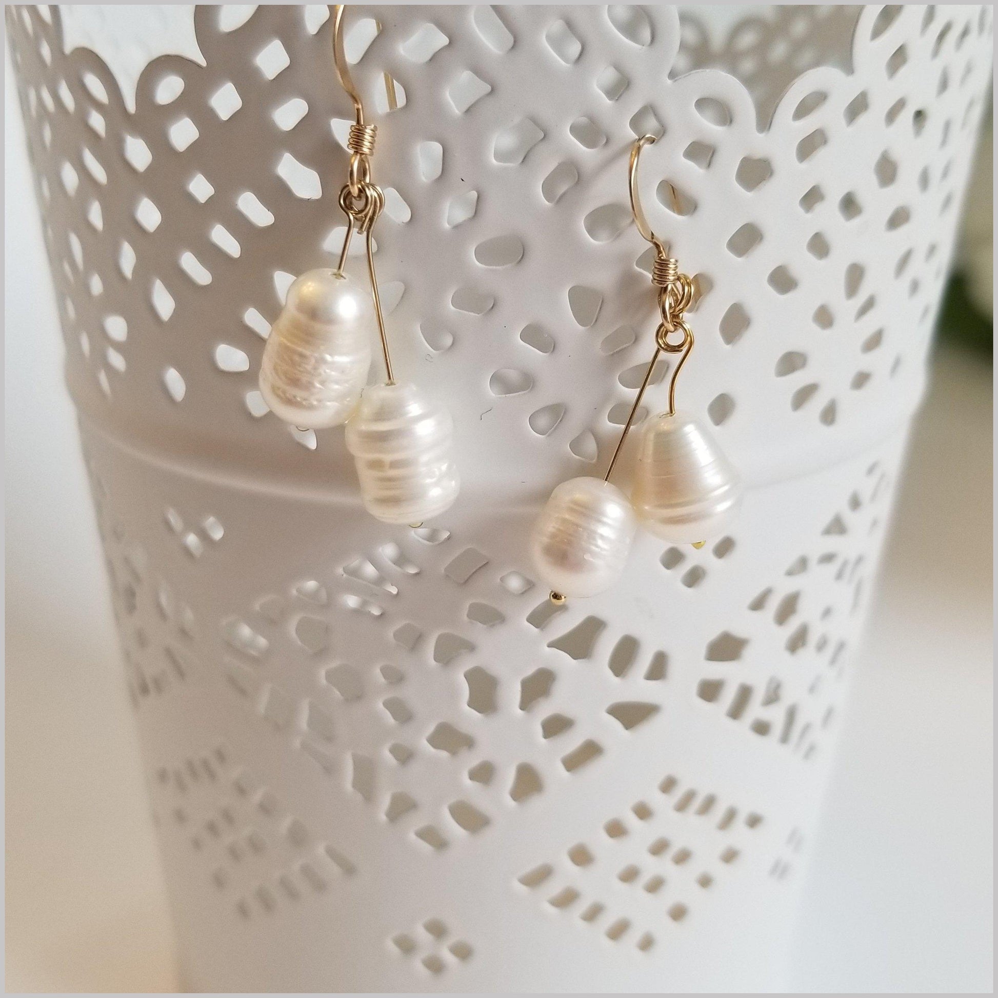 These elegant dangles are handmade with natural Freshwater Pearls.