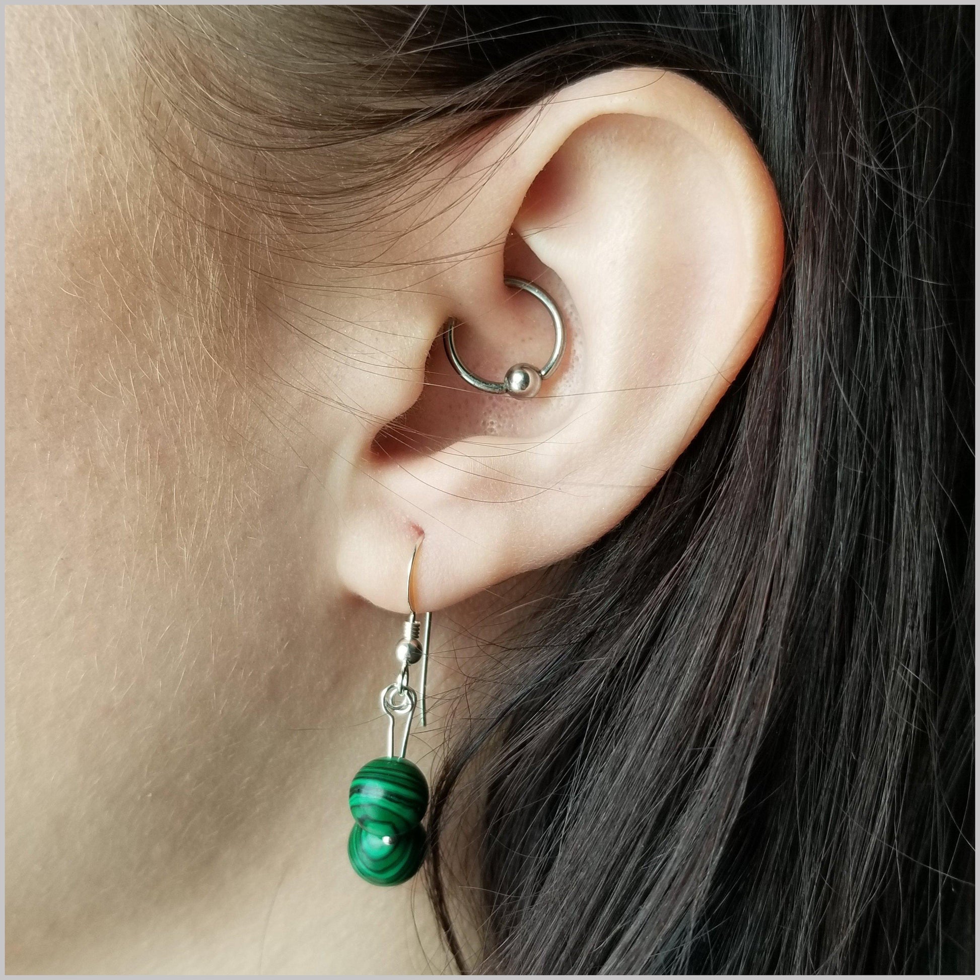 These elegant dangles are handmade with natural Malachite.