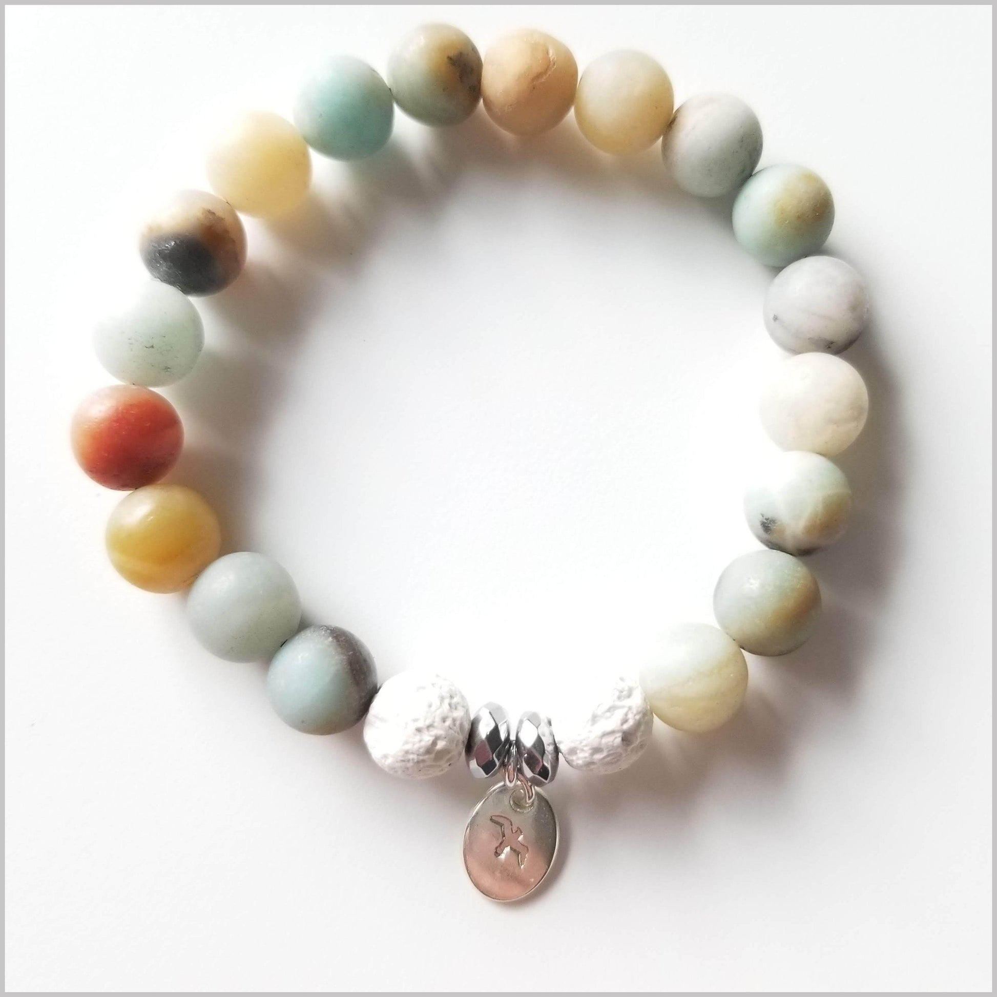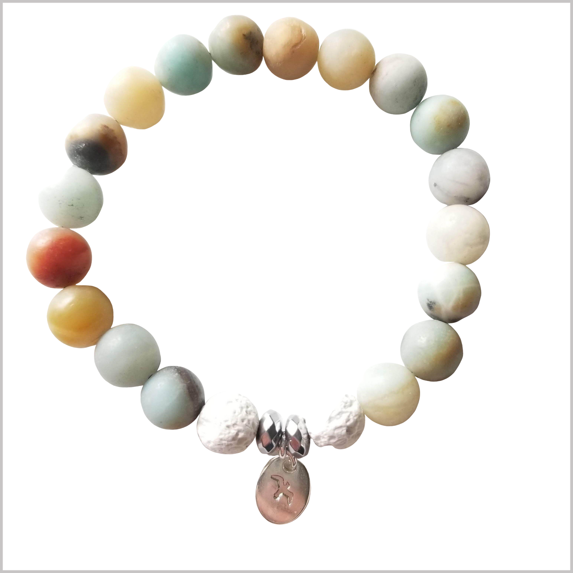 This beautiful bracelet is handmade with natural Amazonite and White Lava Beads.
