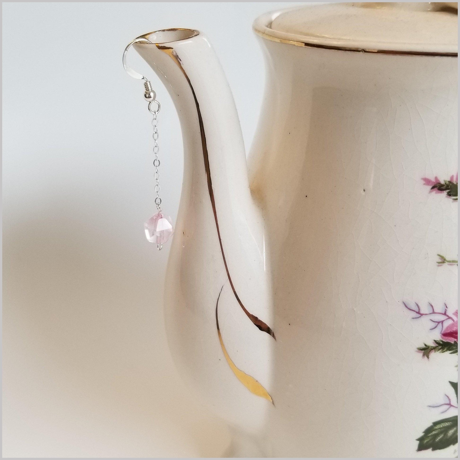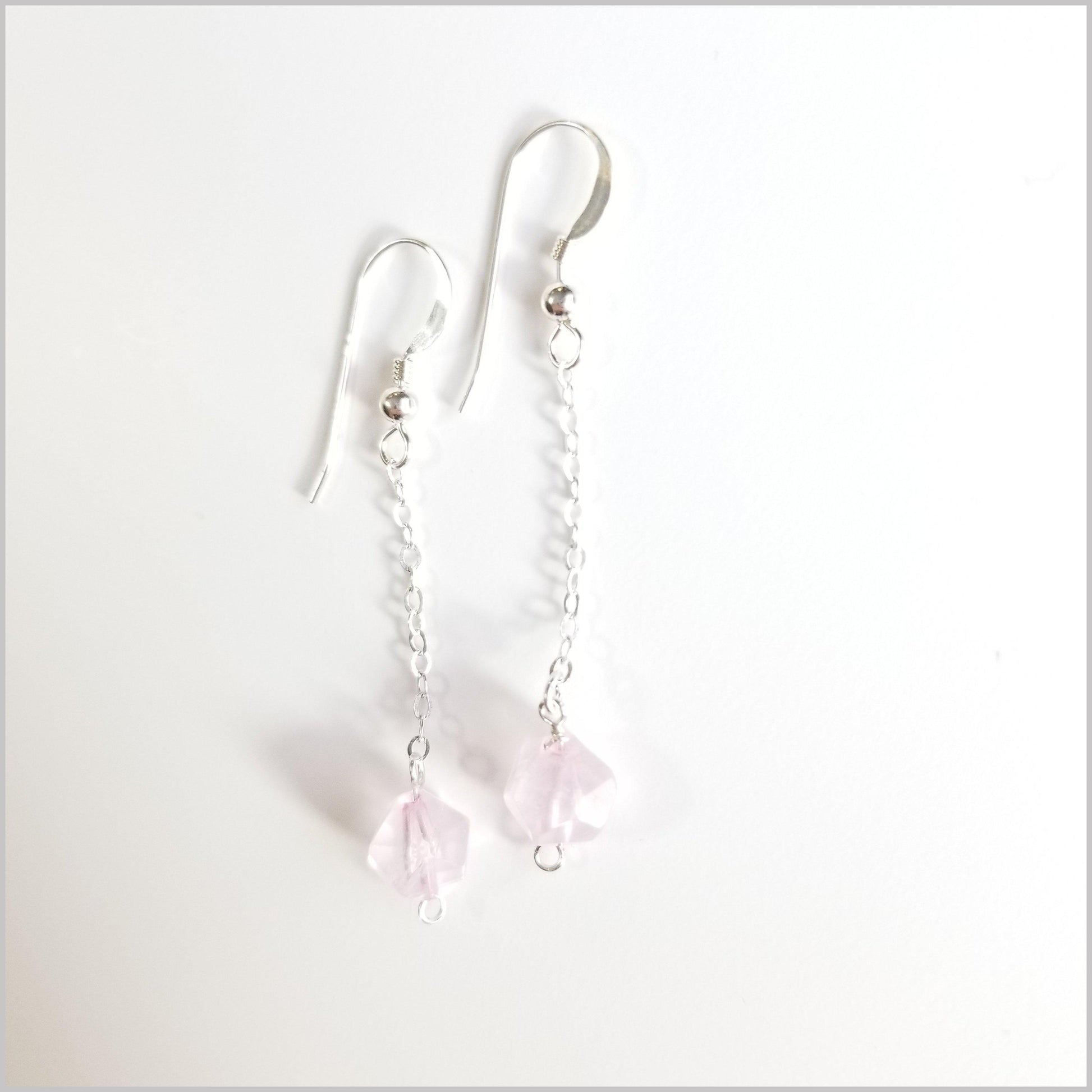 These alluring drop earrings are handmade with natural Rose Quartz.