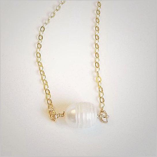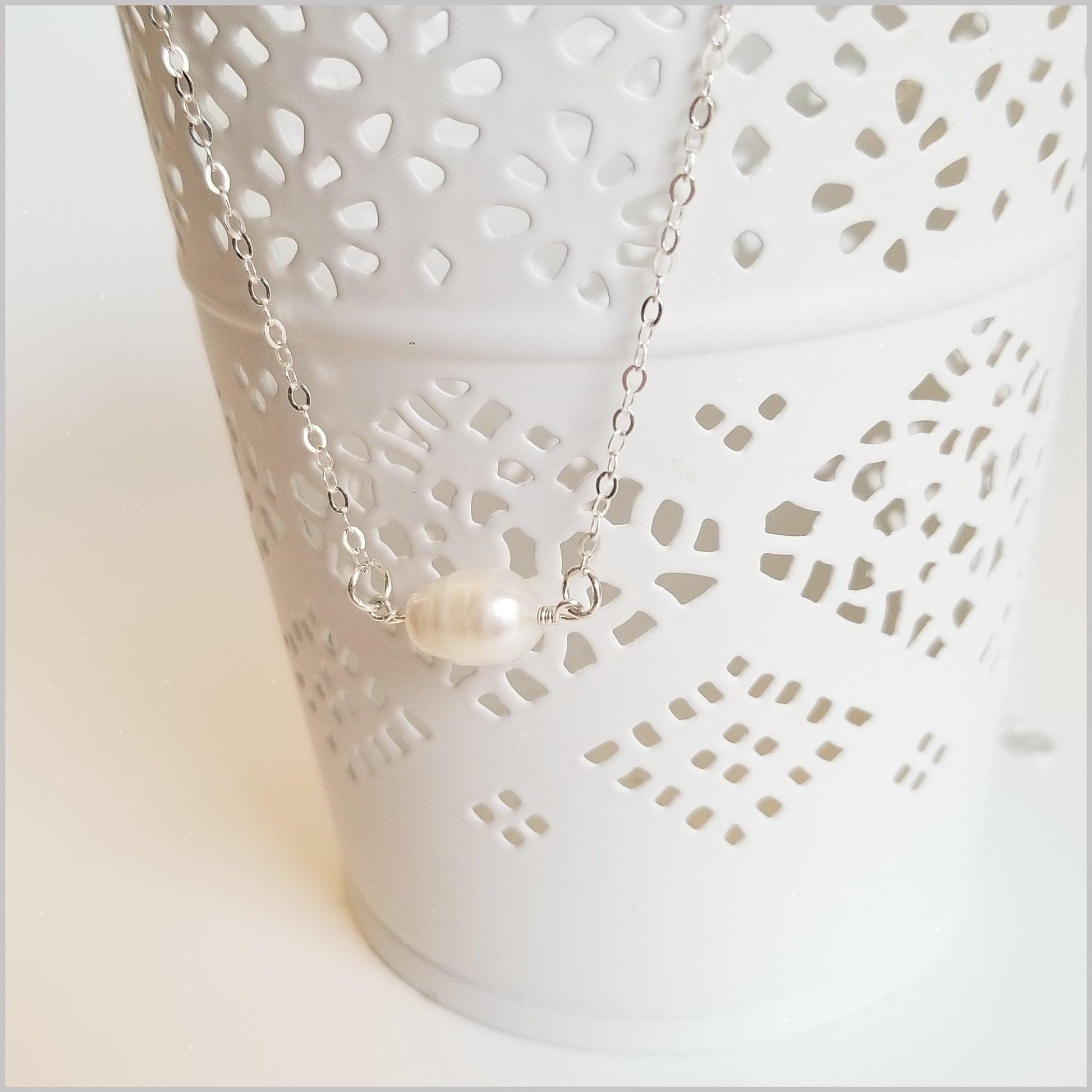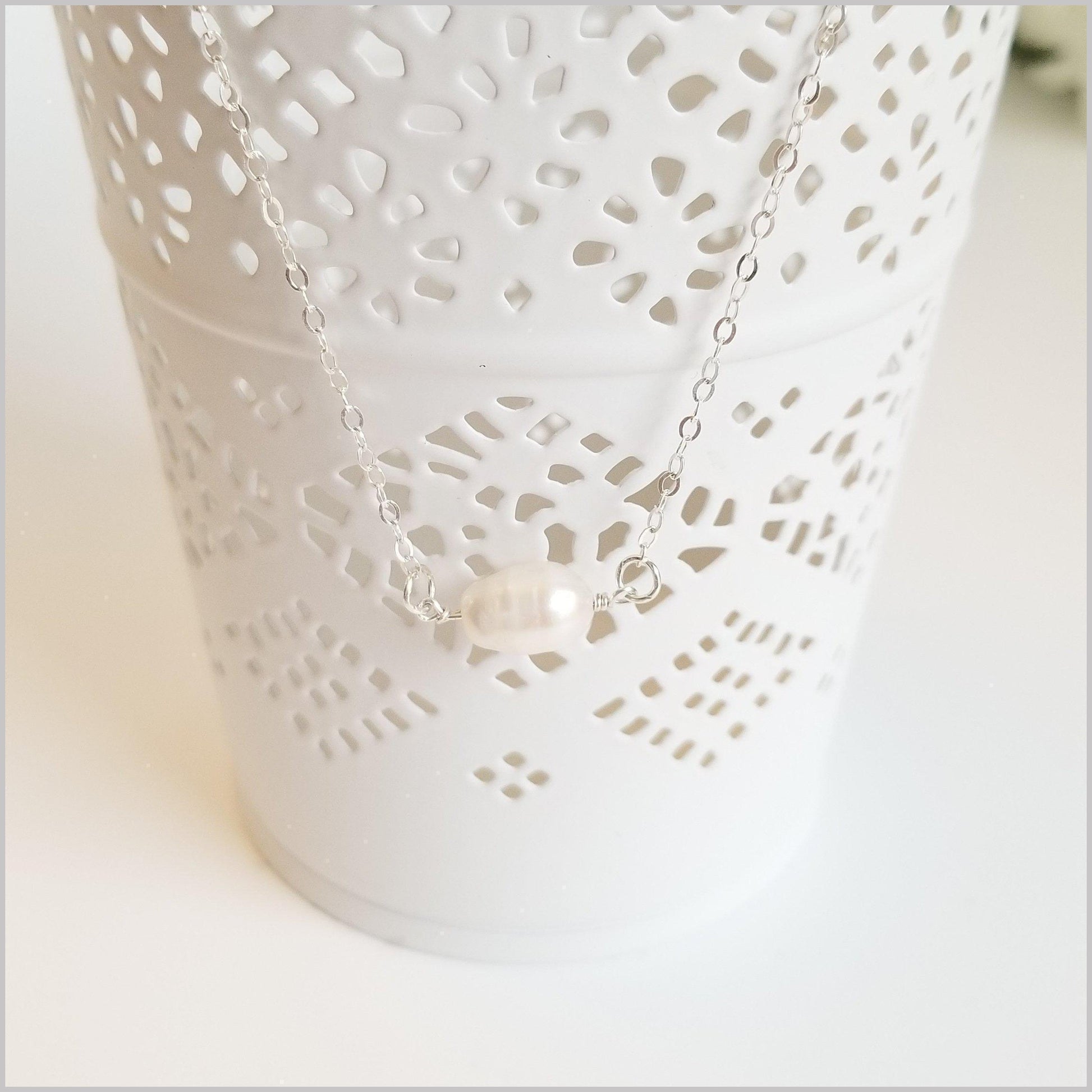 This beautiful and delicate necklace is handmade with natural Freshwater Pearls.