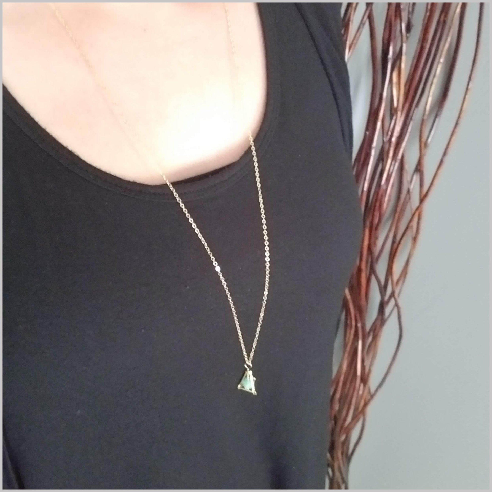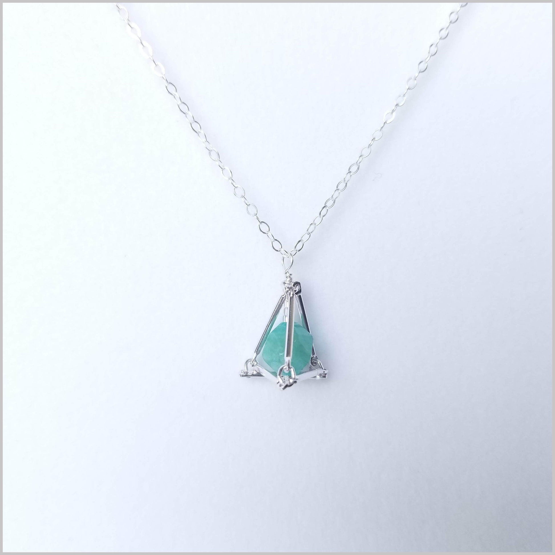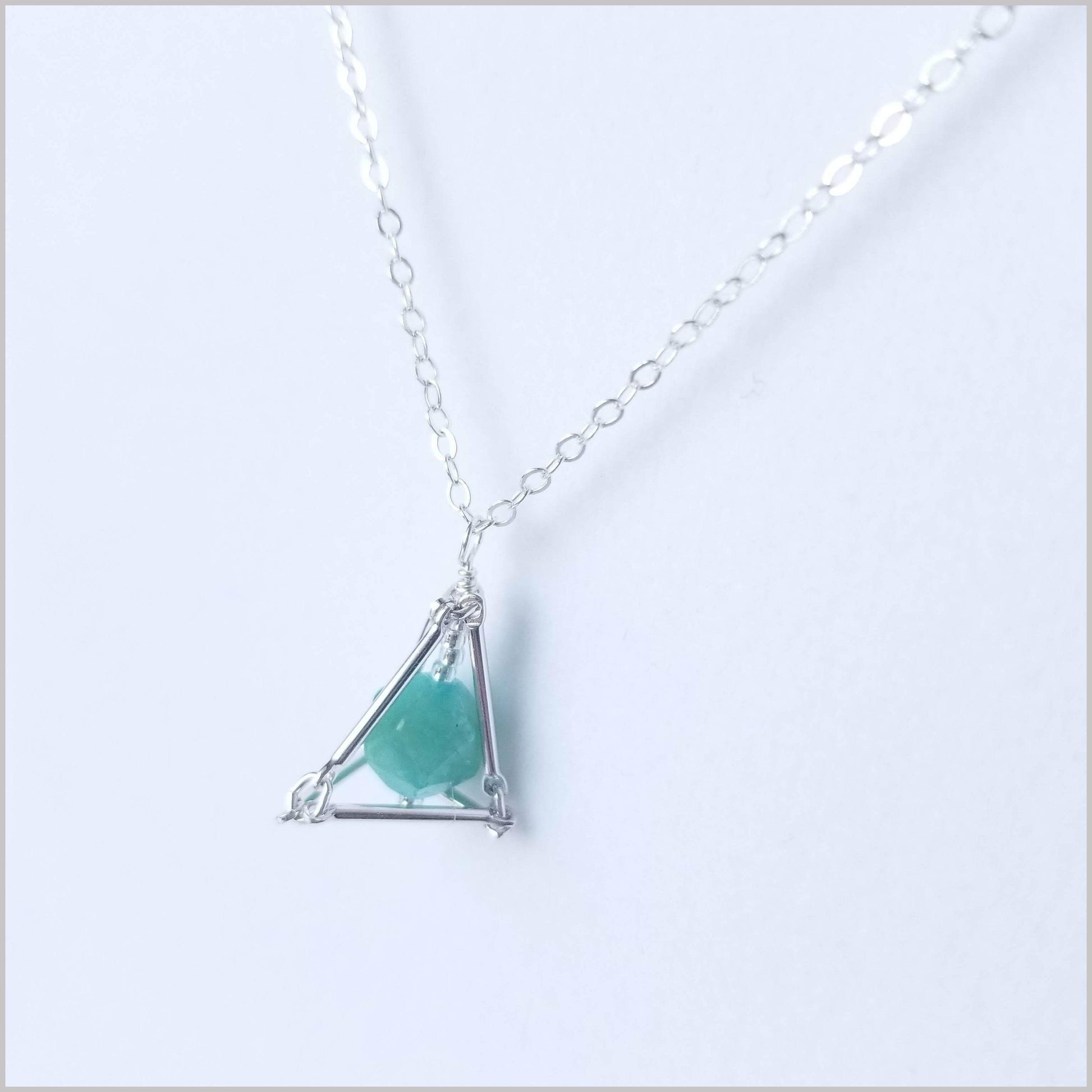 This beautiful and modern geometric necklace is handmade with natural Amazonite.