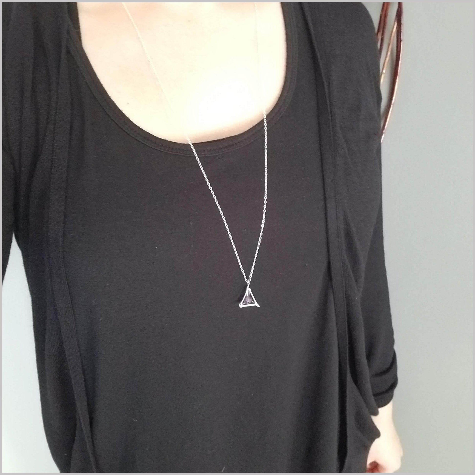 This beautiful and modern geometric necklace is handmade with natural Amethyst..