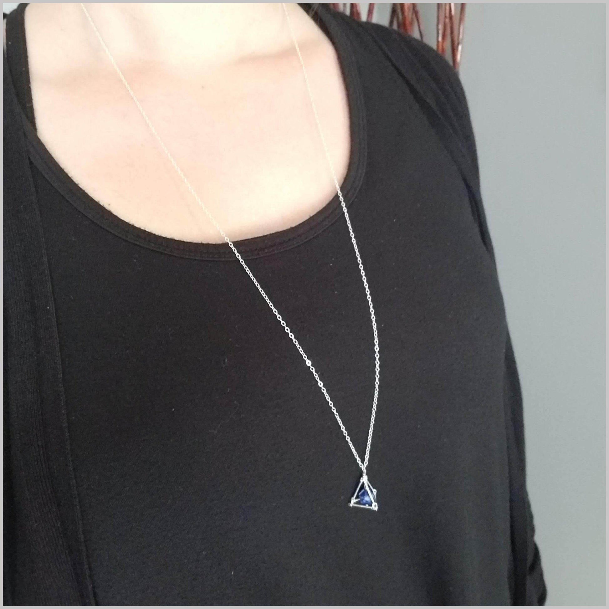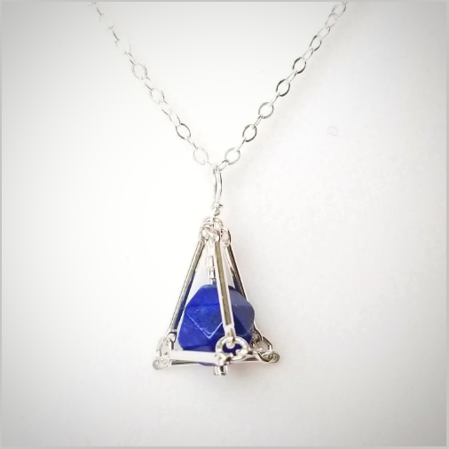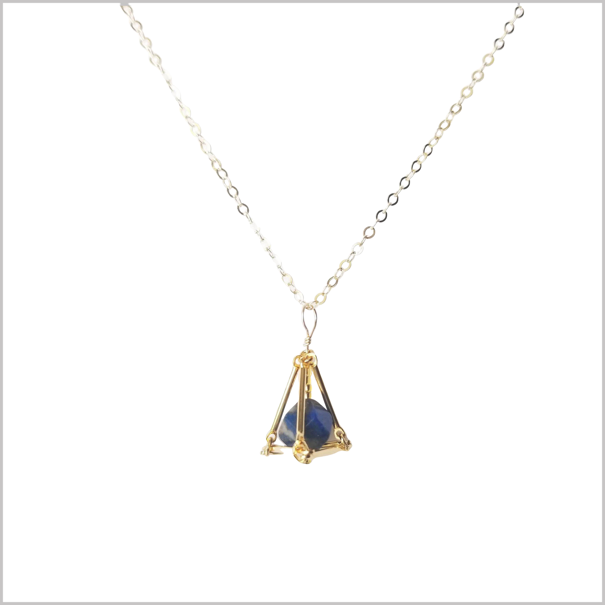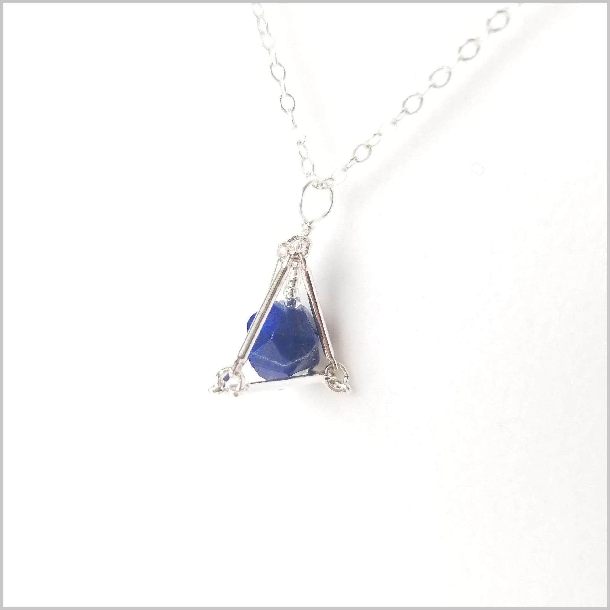 This beautiful and modern geometric necklace is handmade with natural Lapis Lazuli.