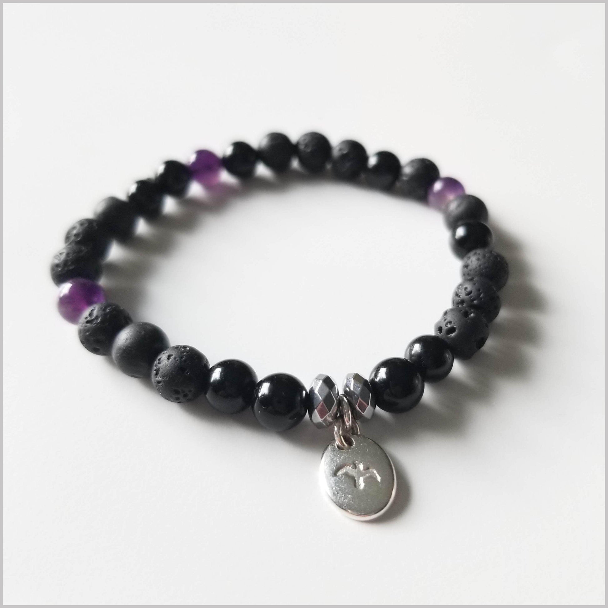 Finished with Sterling Silver plated soaring bird and faceted Hematite. Add a little of your fav essential oil to the Lava stones for added benefit!