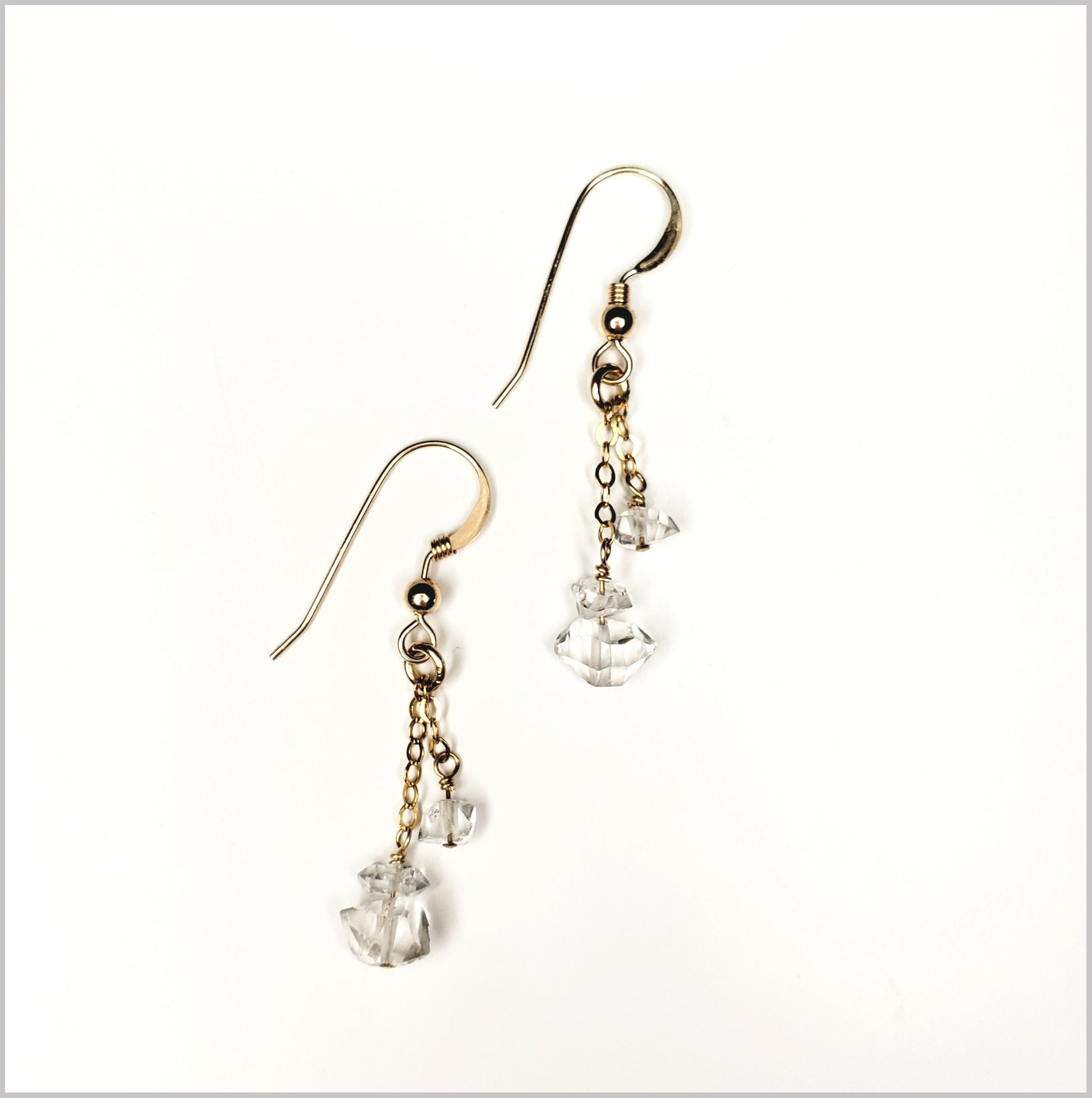 These Delicate and brilliant Earrings are available in 925 Sterling Silver or 14K Gold Fill. Adorned with Grade A Herkimer Quartz diamonds. This piece is sure to shine as brightly as you do.