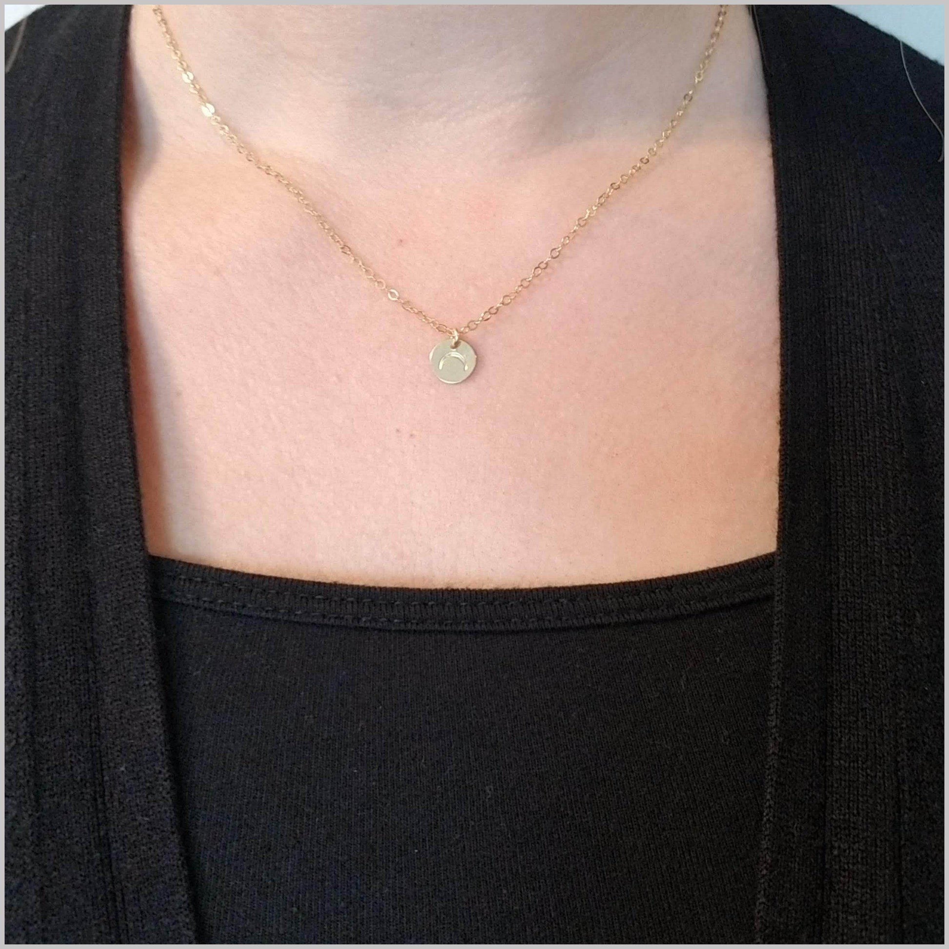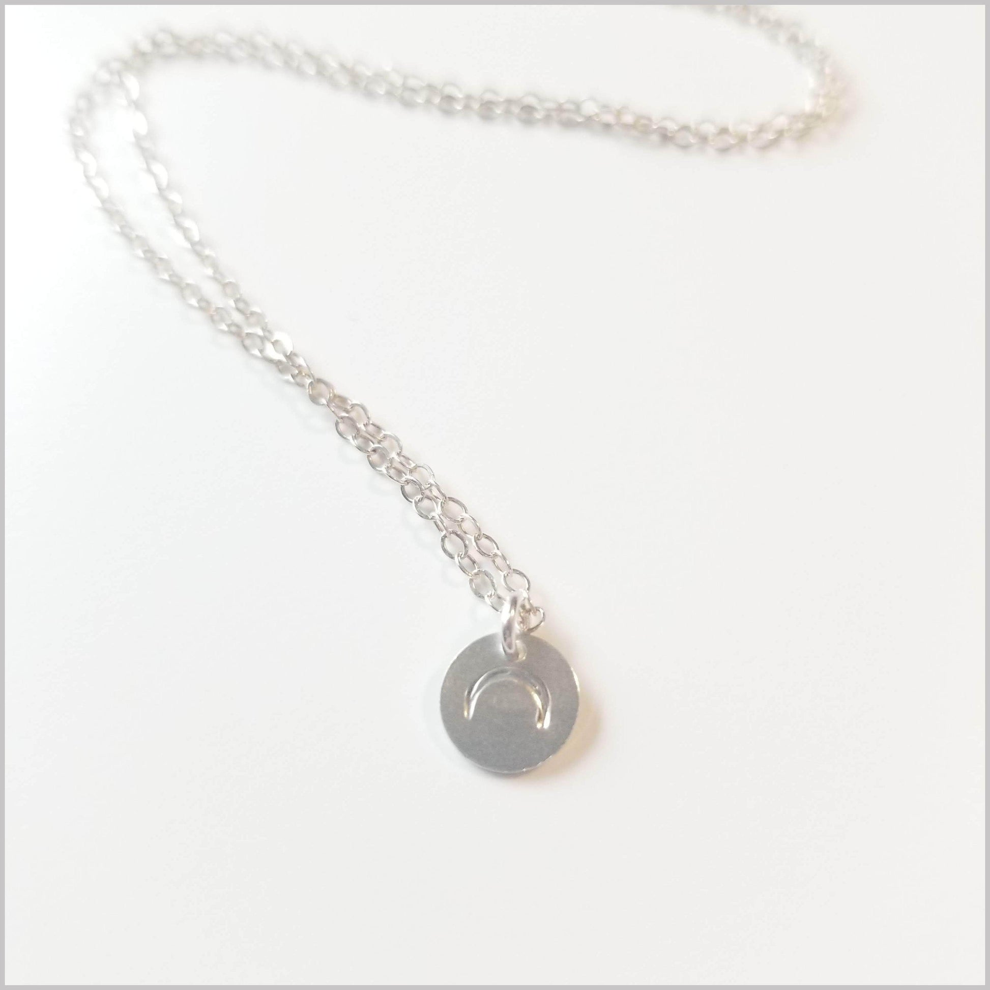 This minimalist necklace features a beautiful upside down crescent moon symbol. The crescent moon symbolizes feminine energy and its cycles. What a beautiful symbol to wear to show your ever-changing power! Finished with a small 4mm Rose Quartz attached to the extender chain for a little extra love. <3