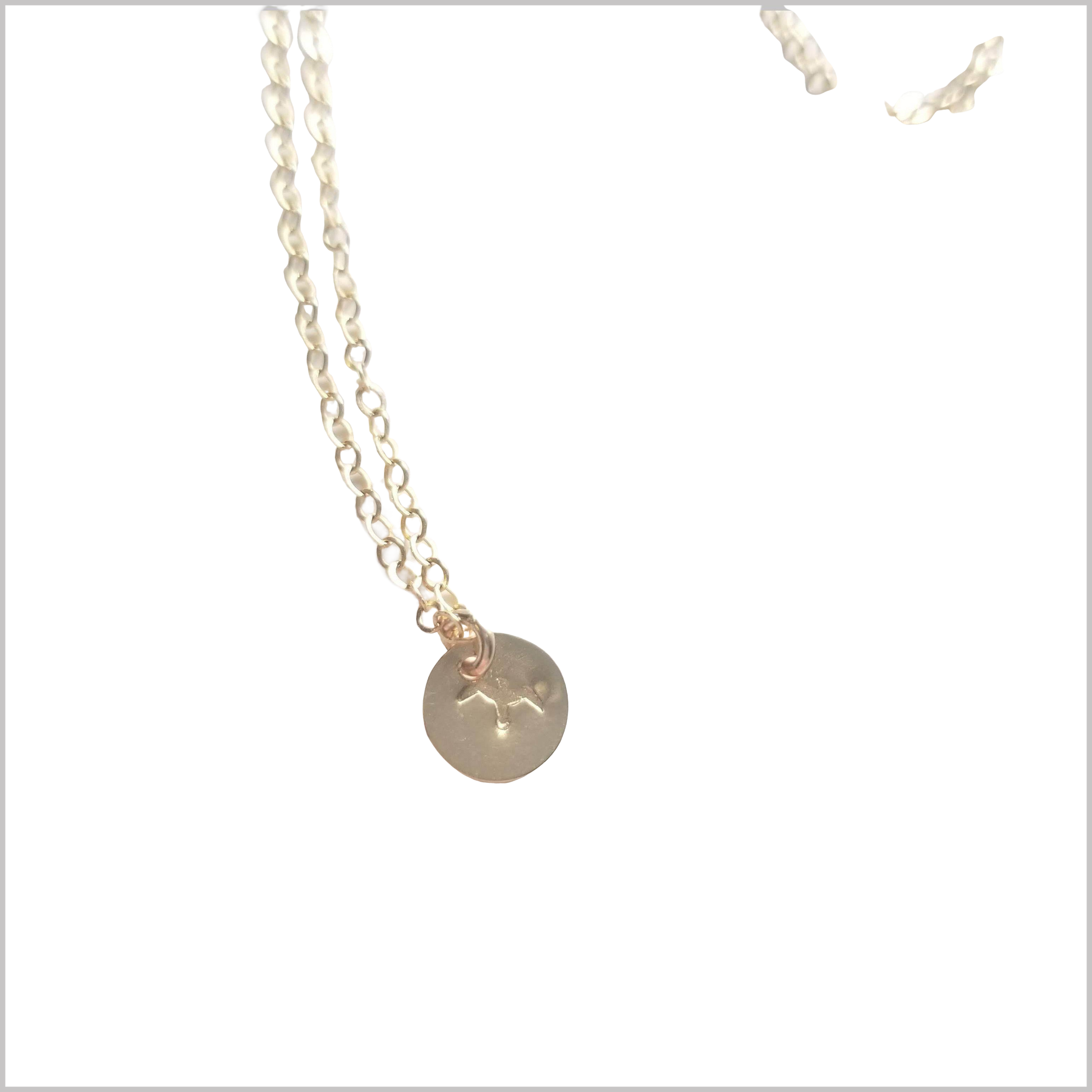 This beautiful and delicate necklace is entirely 14 Karat Gold Fill or 925 Sterling Silver.