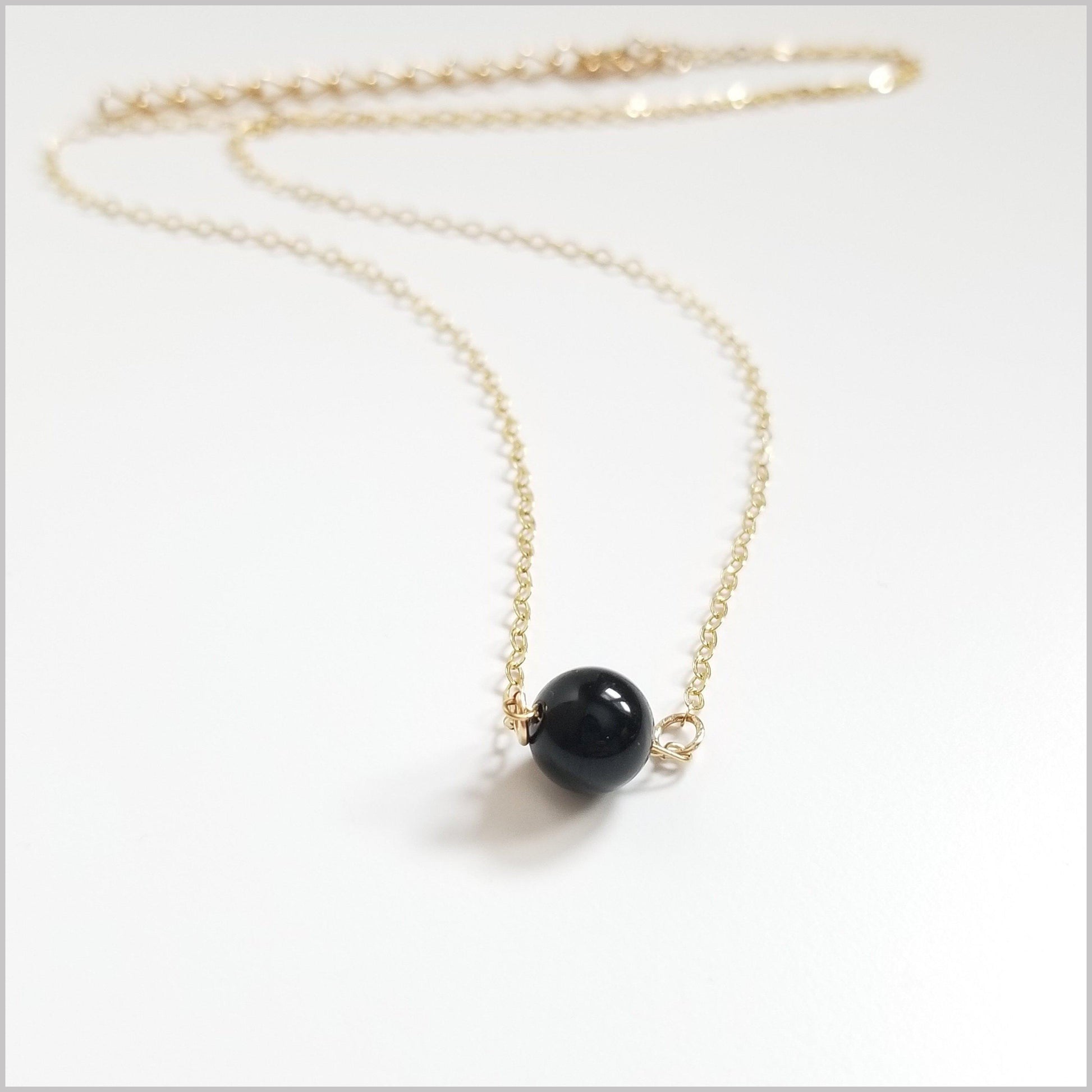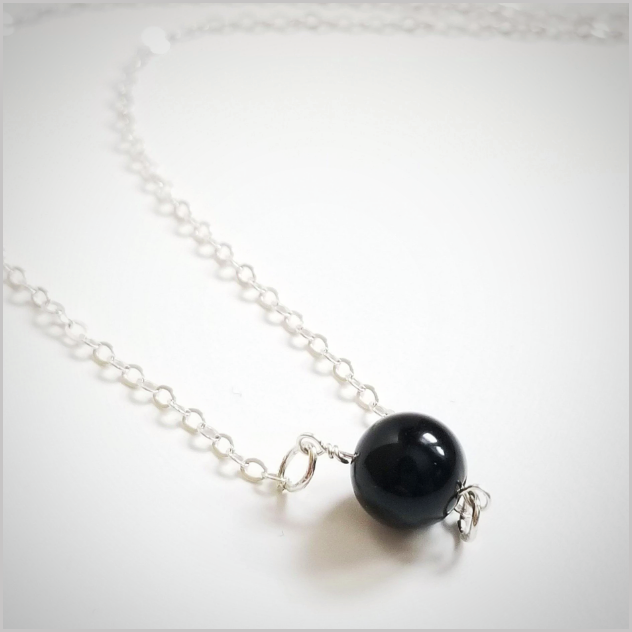 This beautiful and delicate necklace is handmade with natural Obsidian.