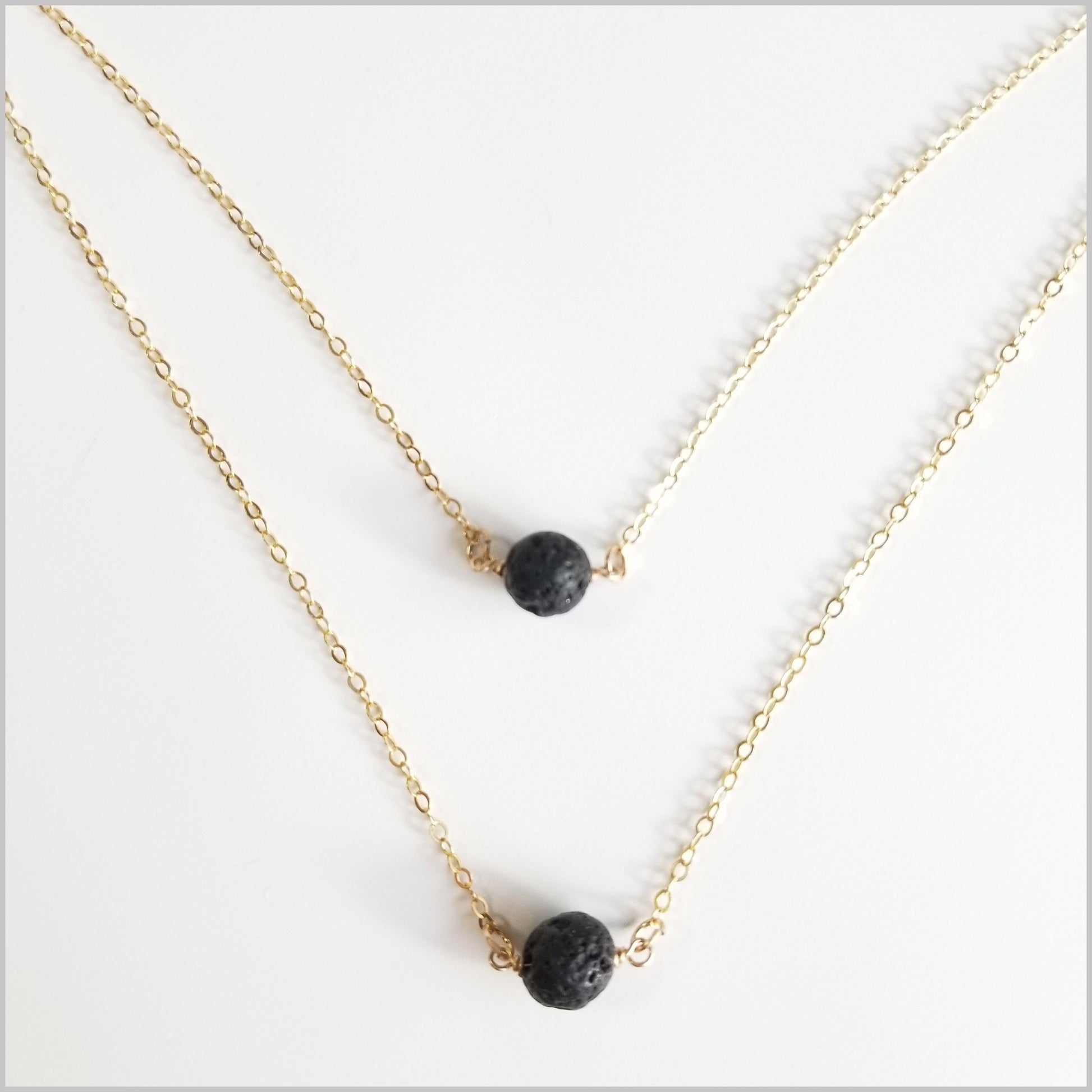 This double strand essential oil necklace is handmade with natural Lava Stone.