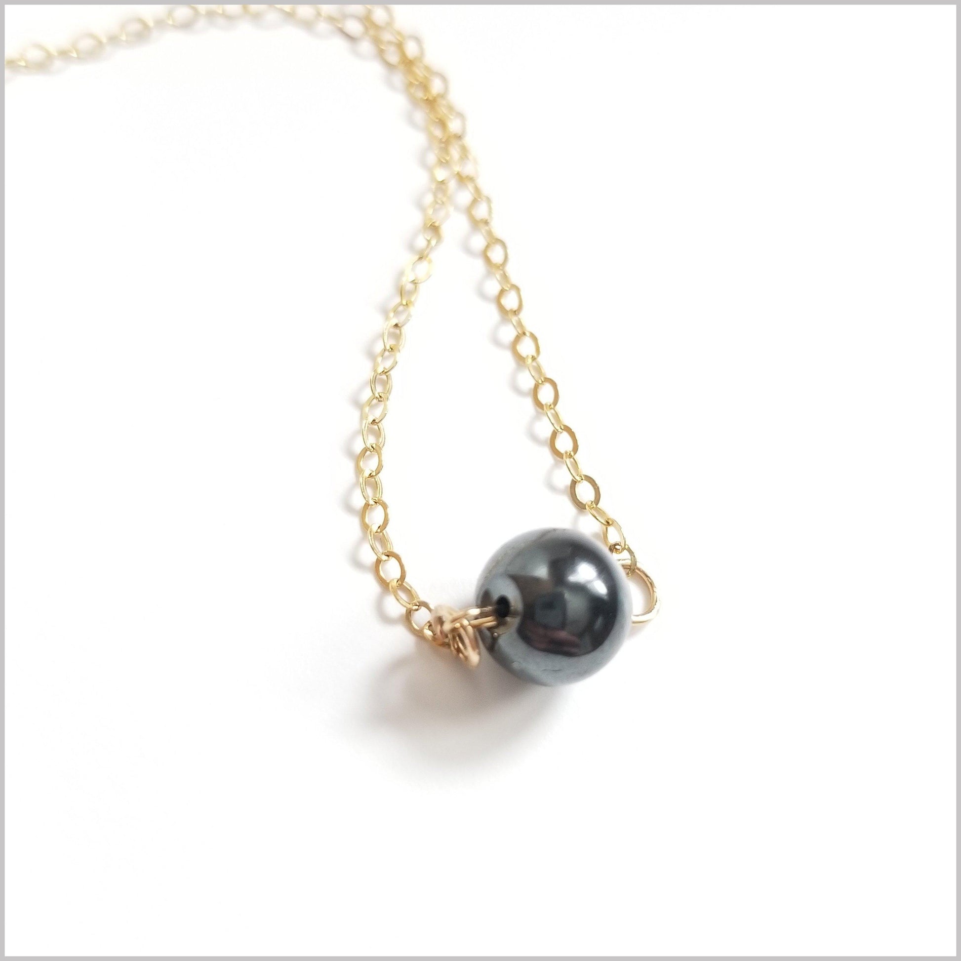This beautiful and delicate necklace is handmade with natural Hematite.