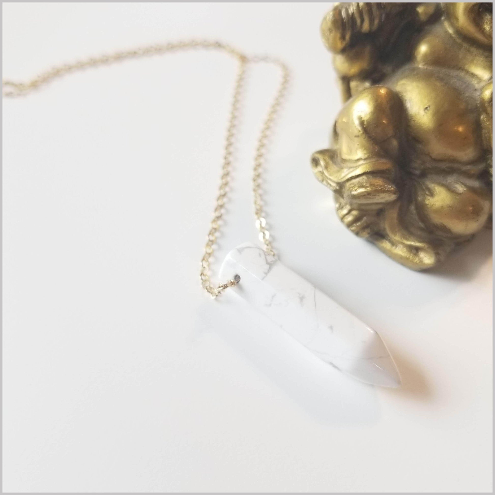 This beautiful and delicate necklace is handmade with natural Howlite.