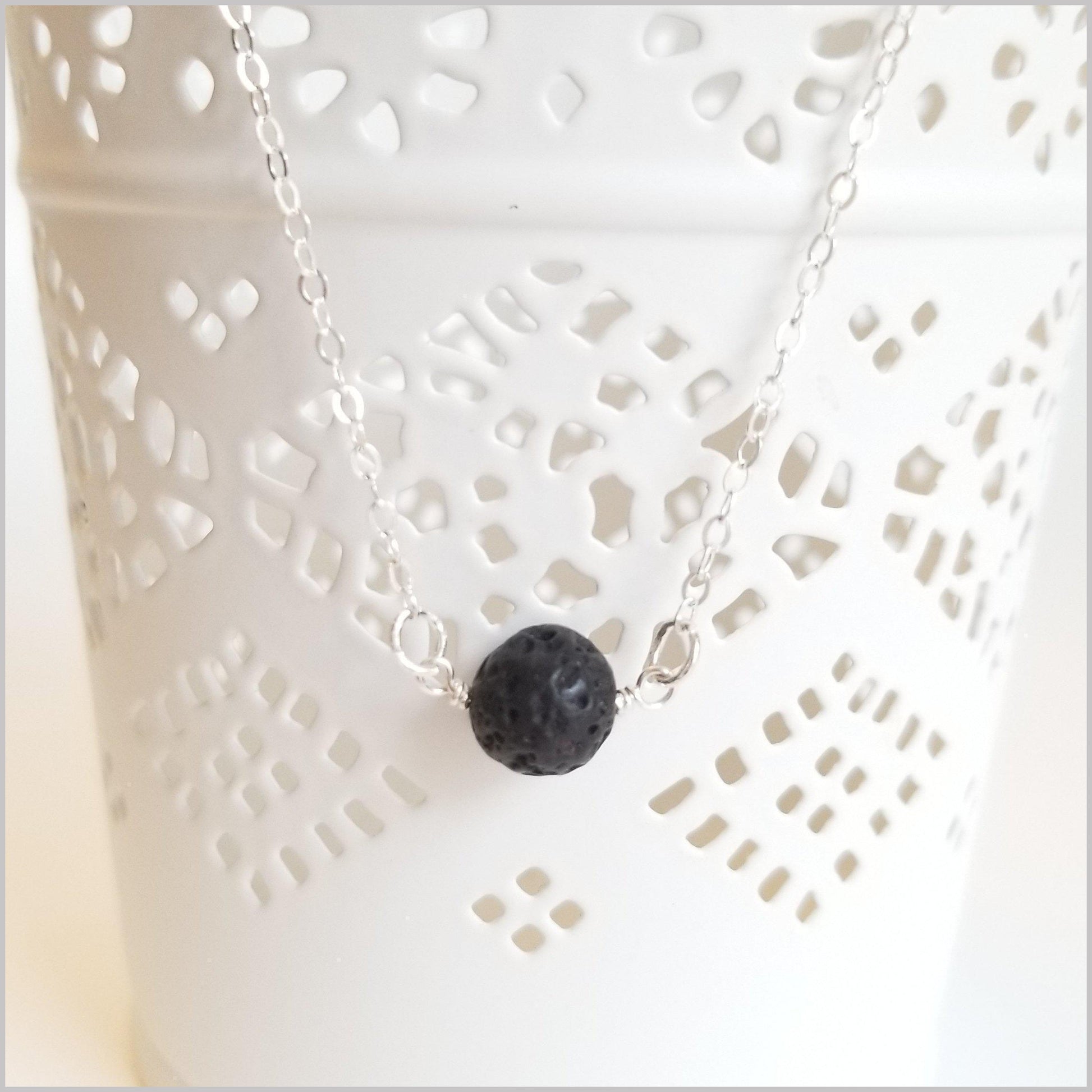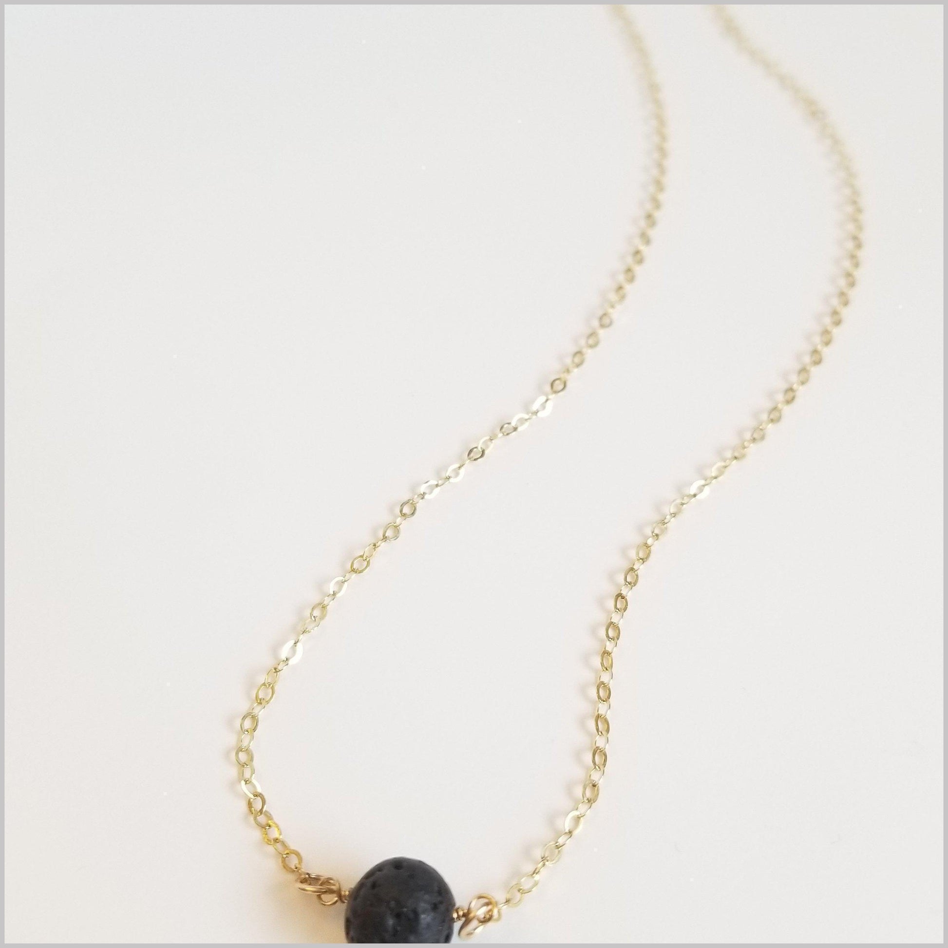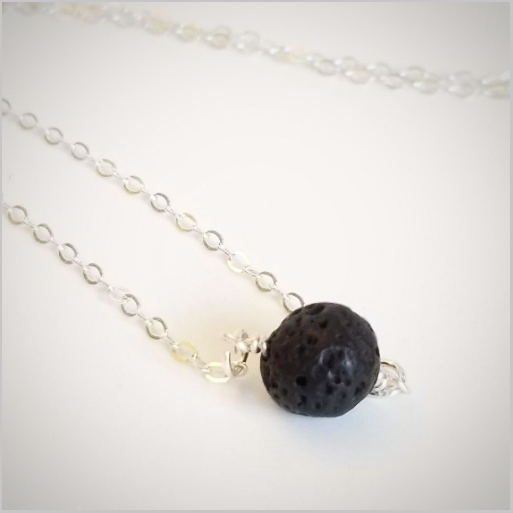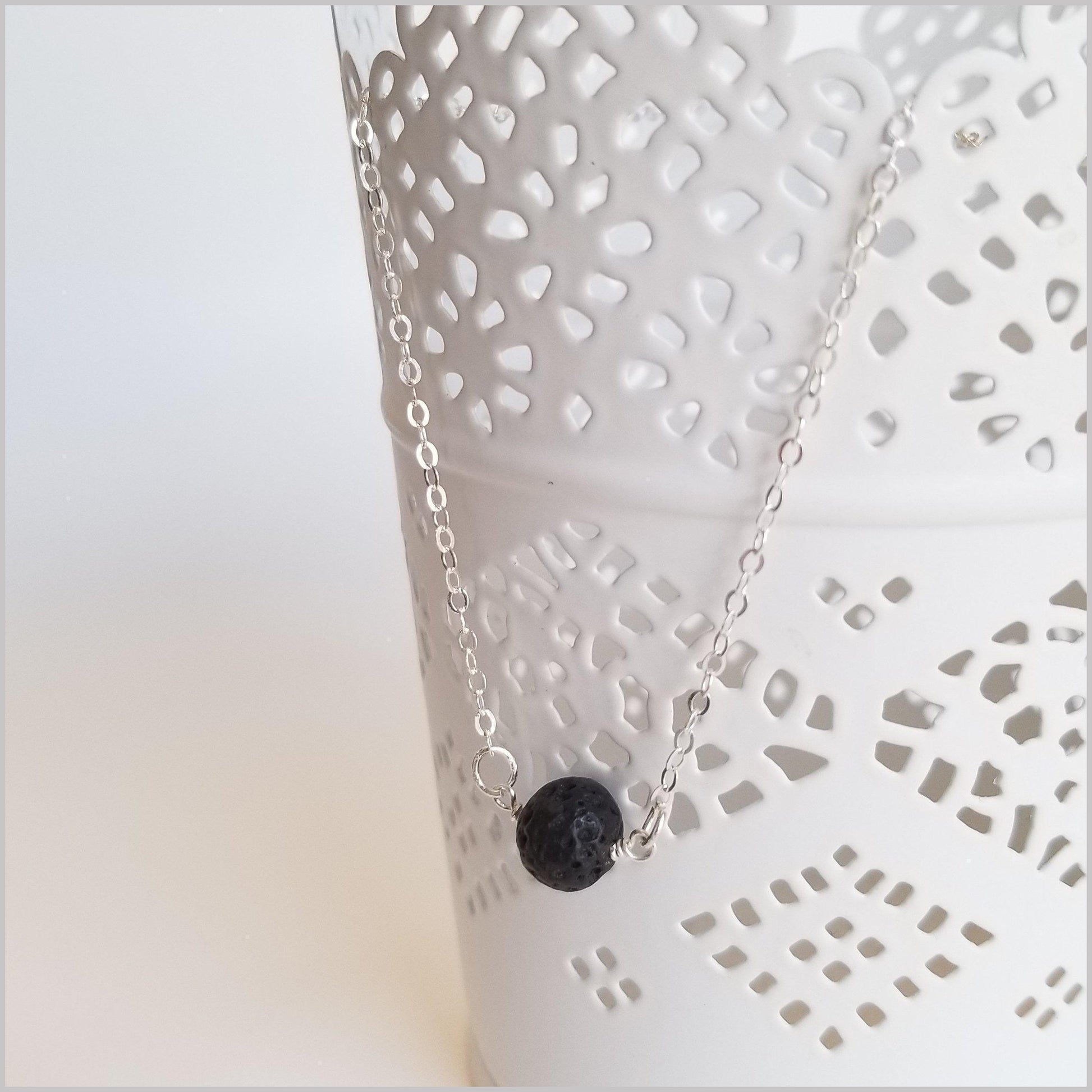 This beautiful and delicate necklace is handmade with natural Lava Stone.