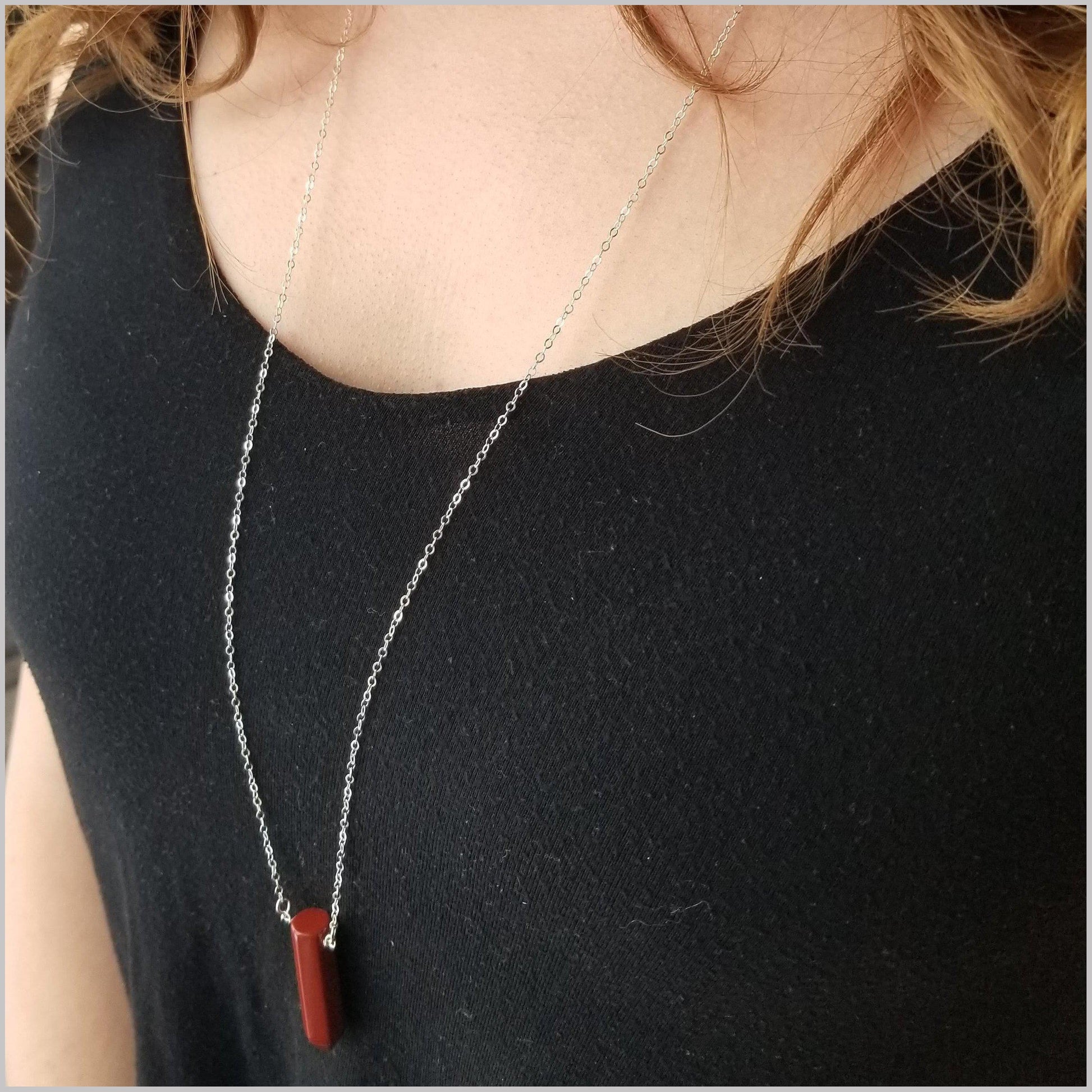 This beautiful and delicate necklace is handmade with natural Red Jasper.