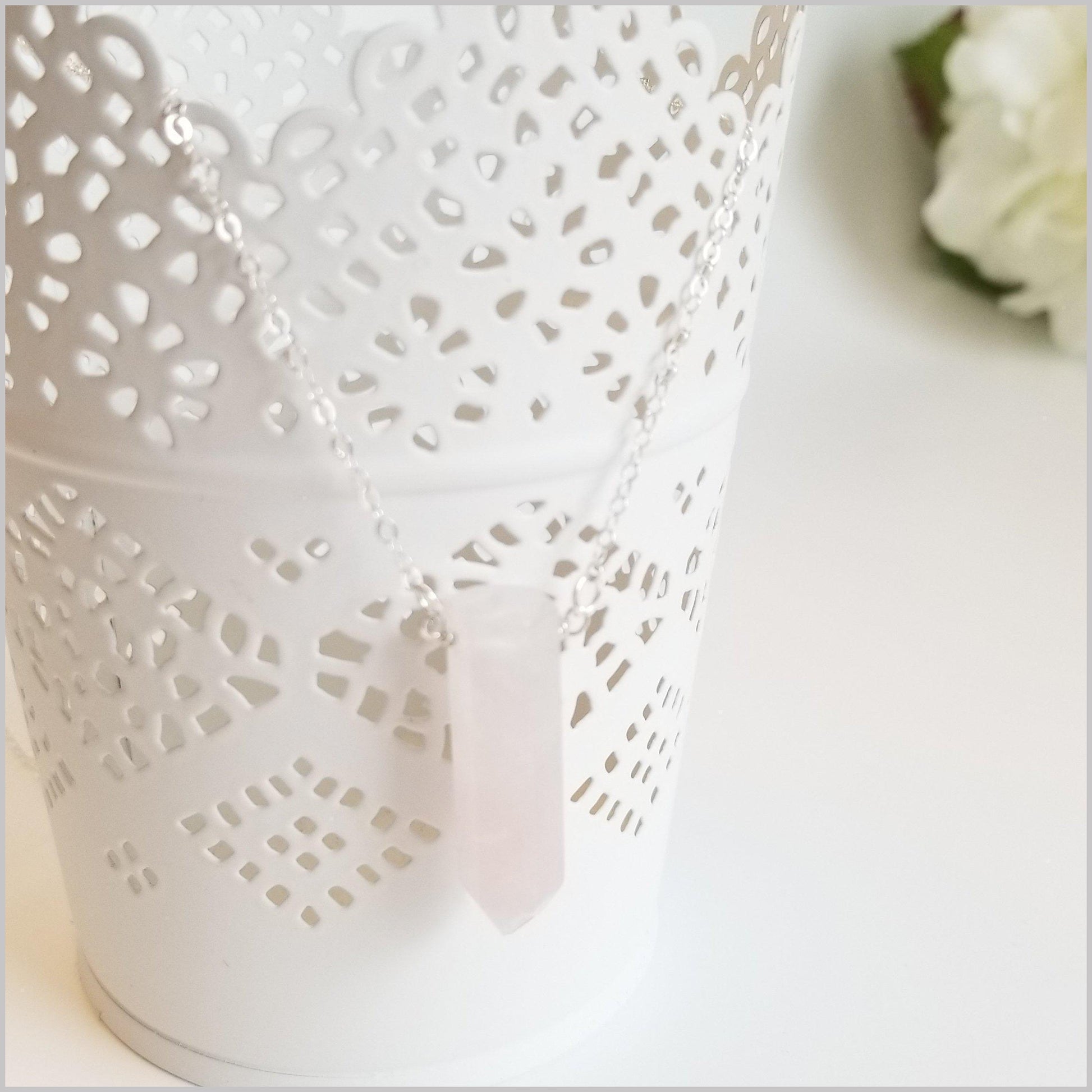 This beautiful and delicate necklace is handmade with natural Rose Quartz.