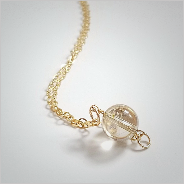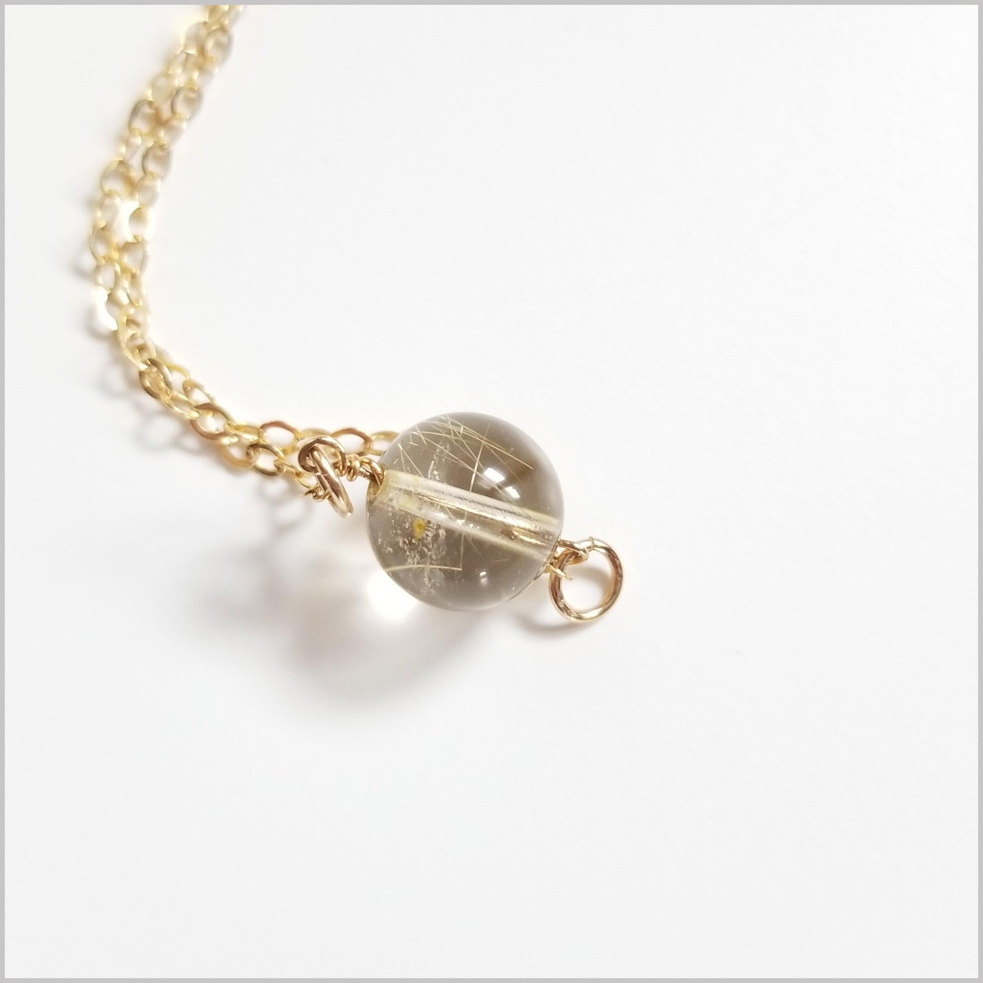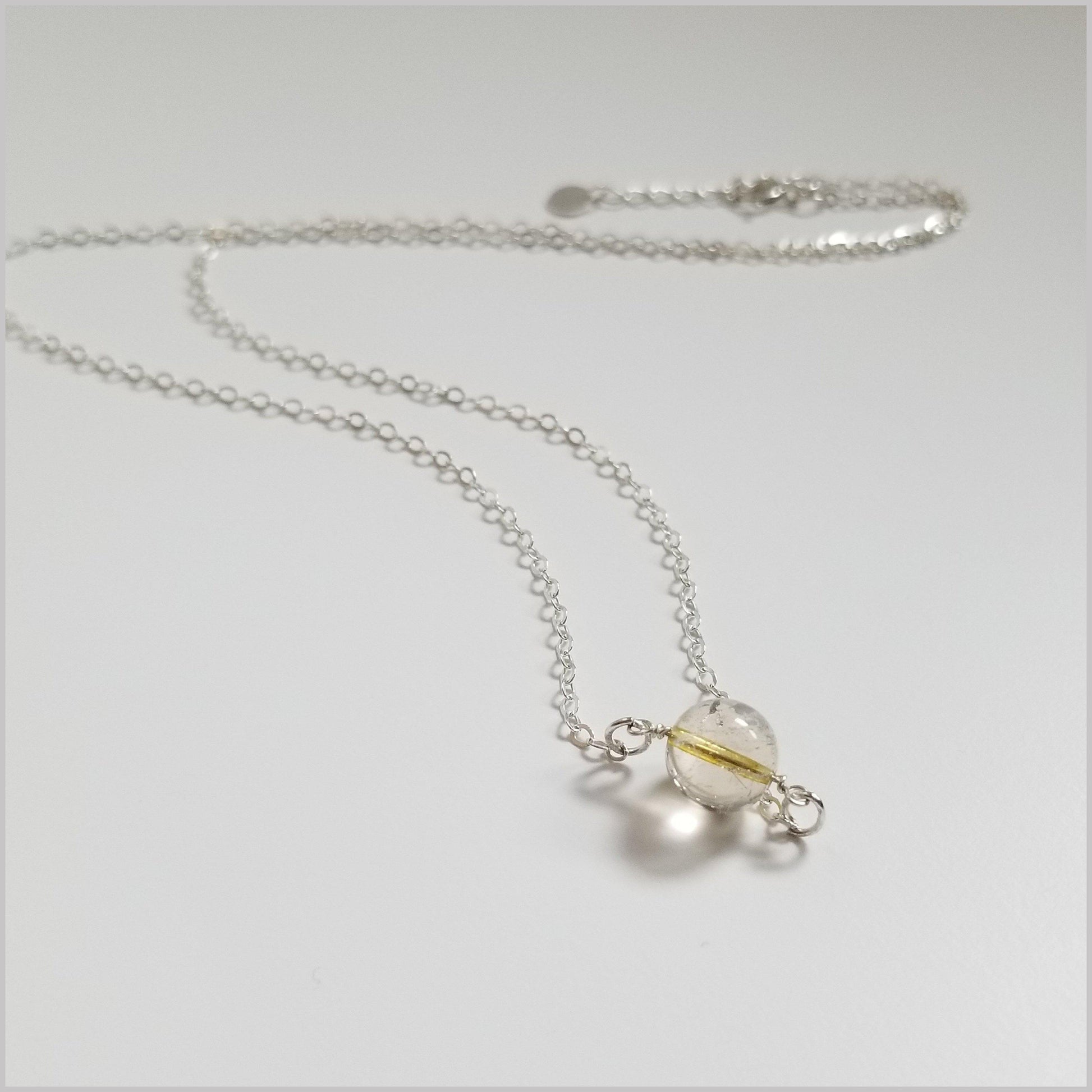 This beautiful and delicate necklace is handmade with natural Rutilated Quartz.