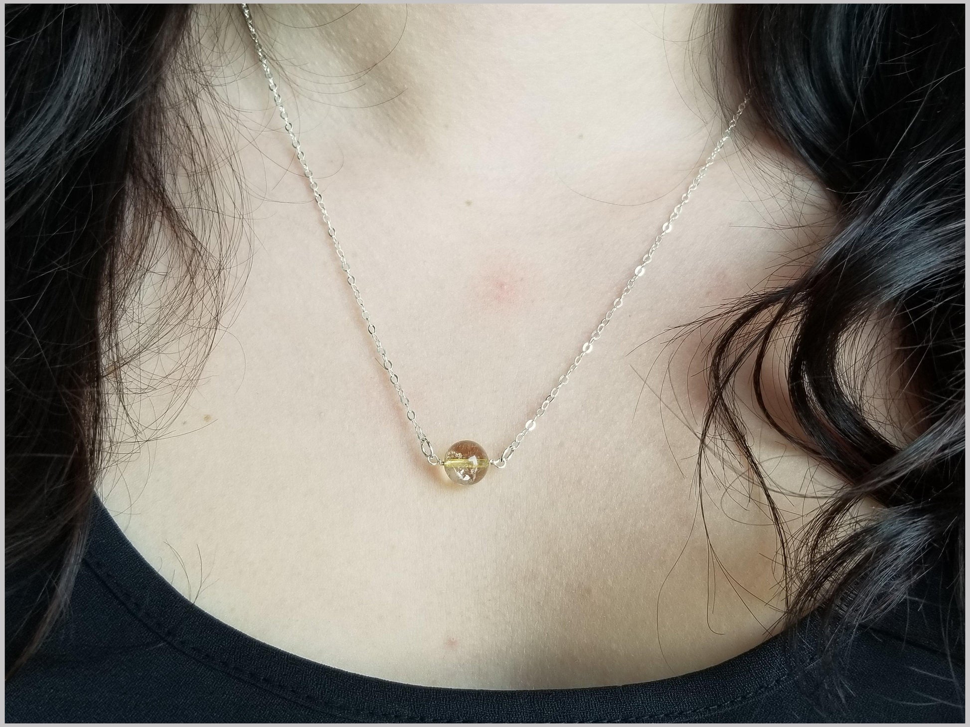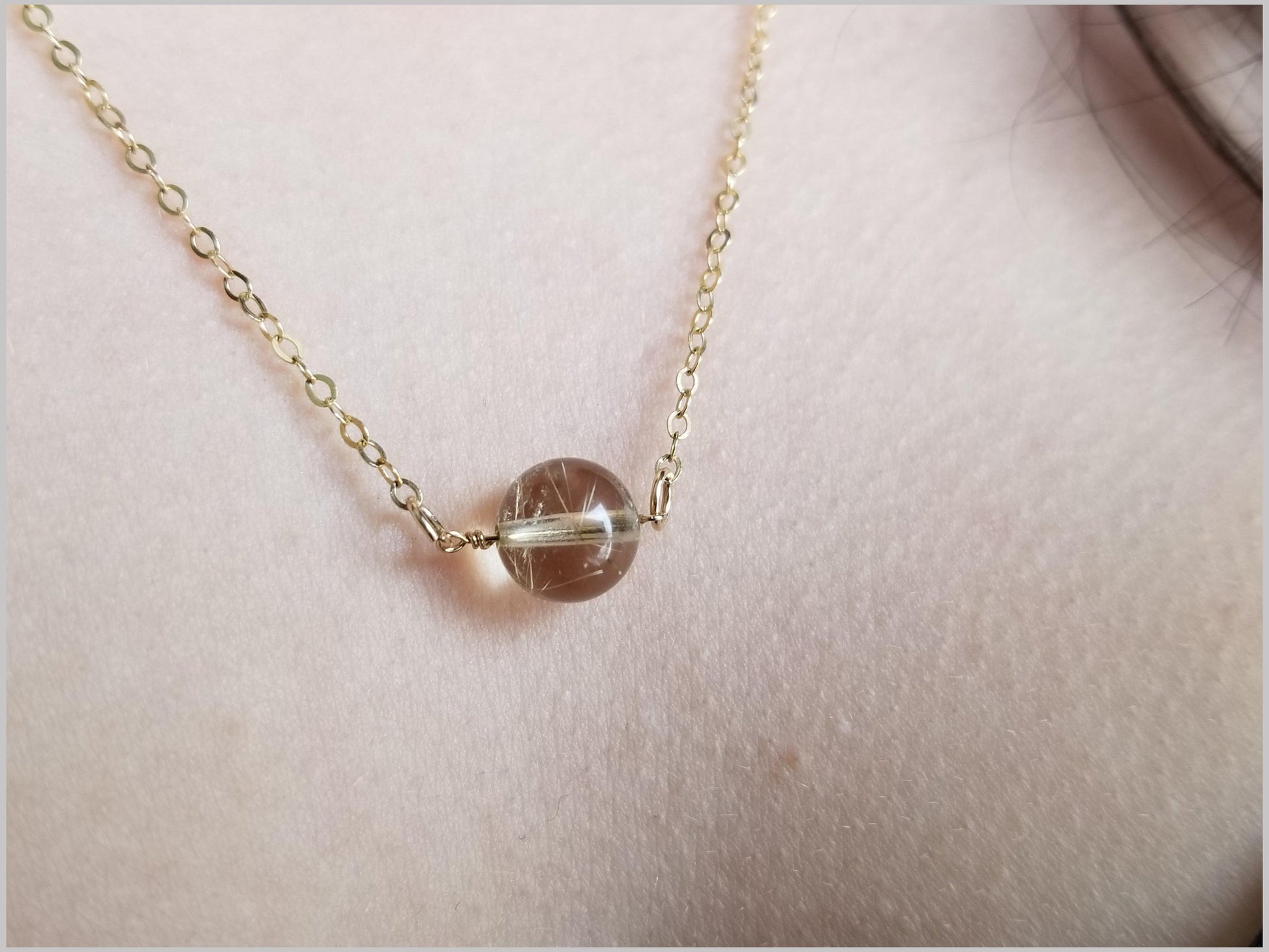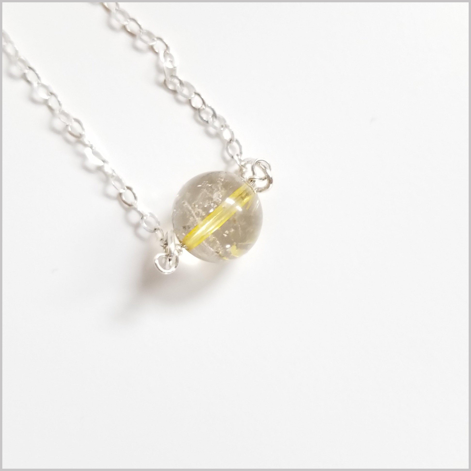 This beautiful and delicate necklace is handmade with natural Rutilated Quartz.