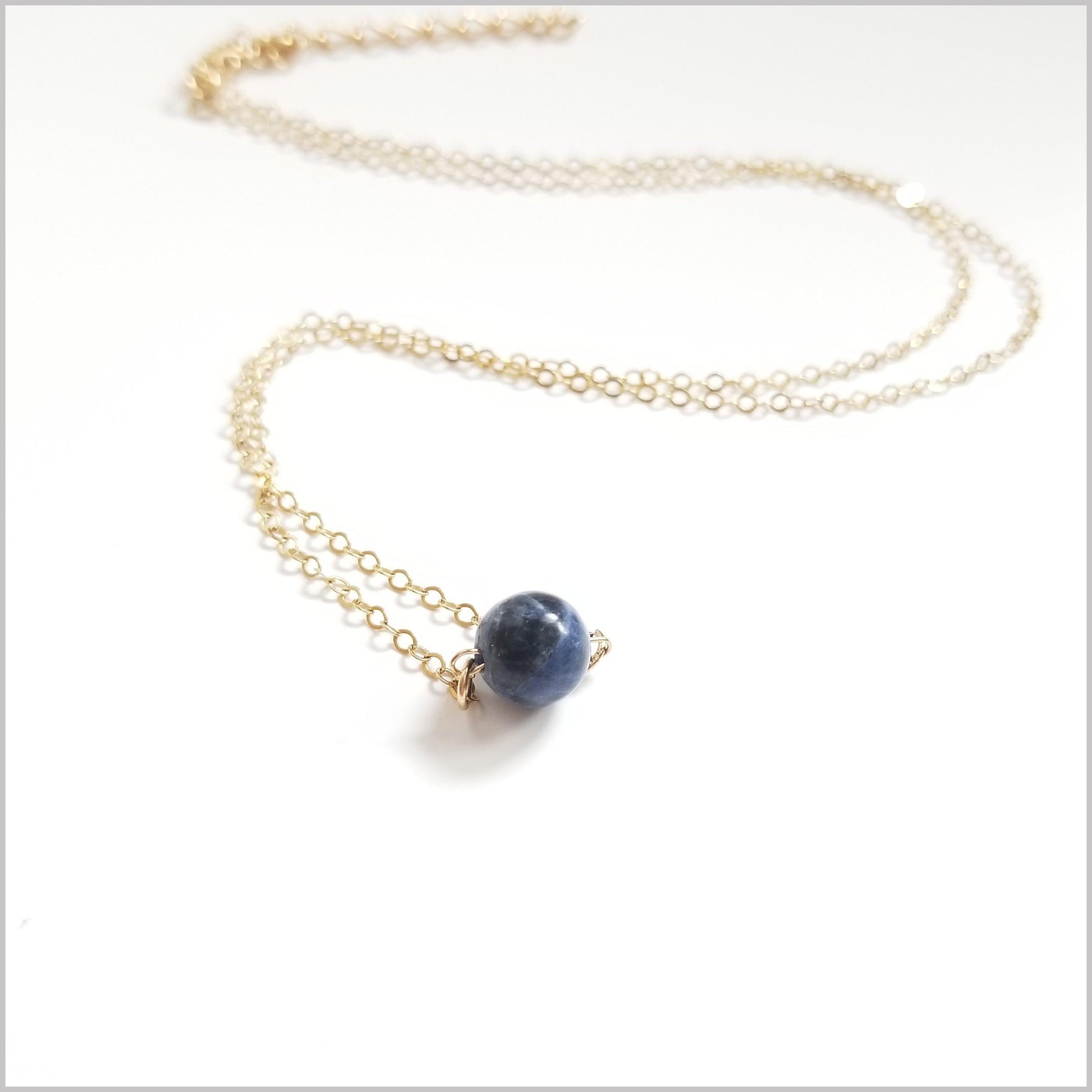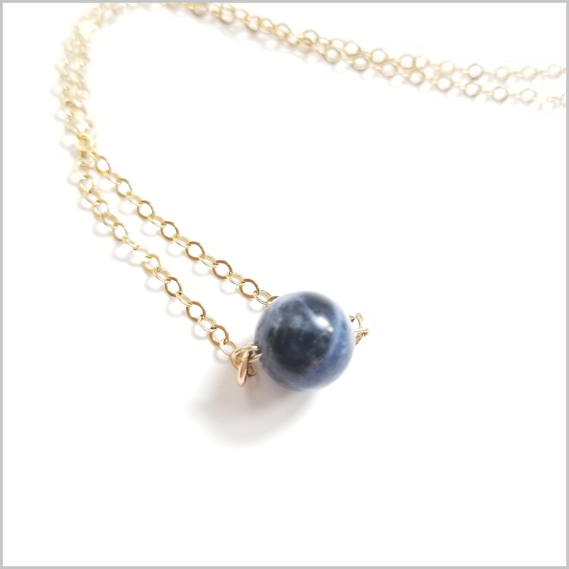 This beautiful and delicate necklace is handmade with natural Sodalite.