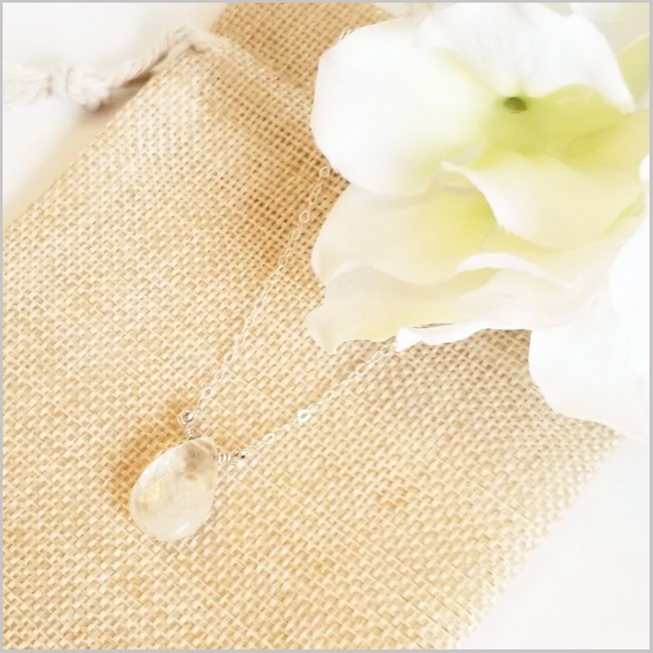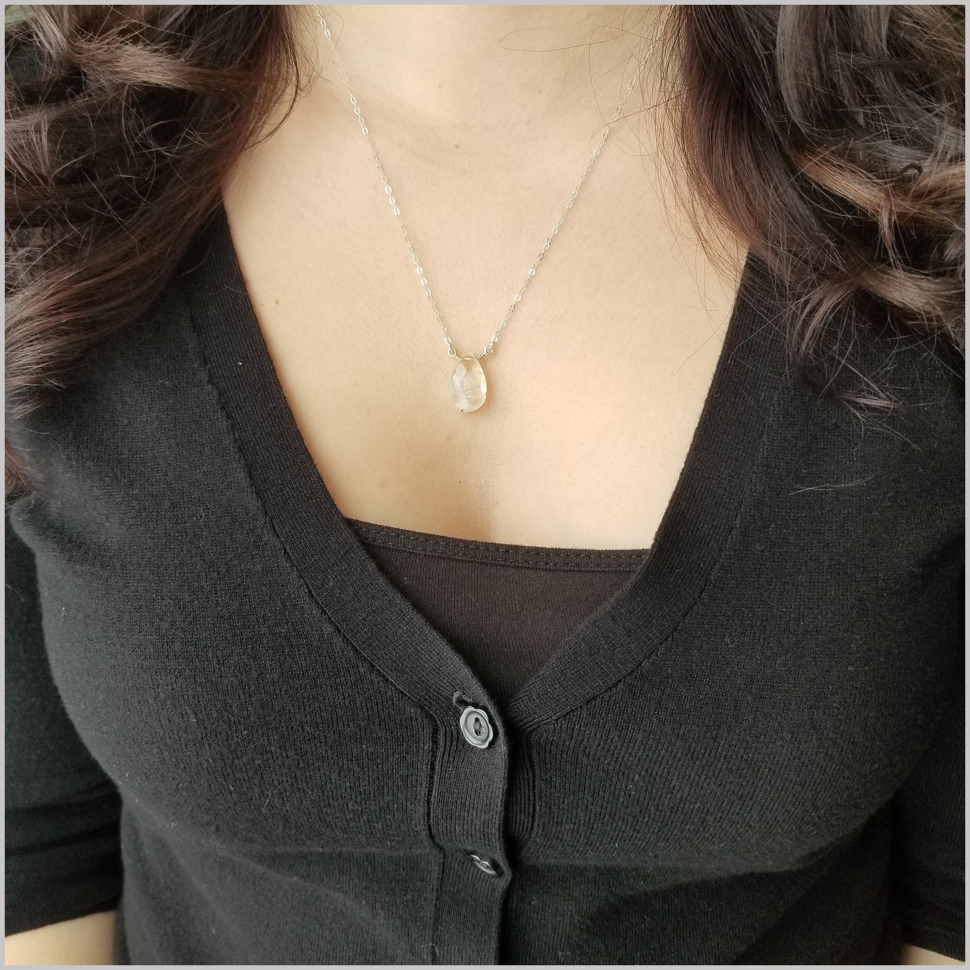 This beautiful and delicate necklace is handmade with natural Clear Quartz.