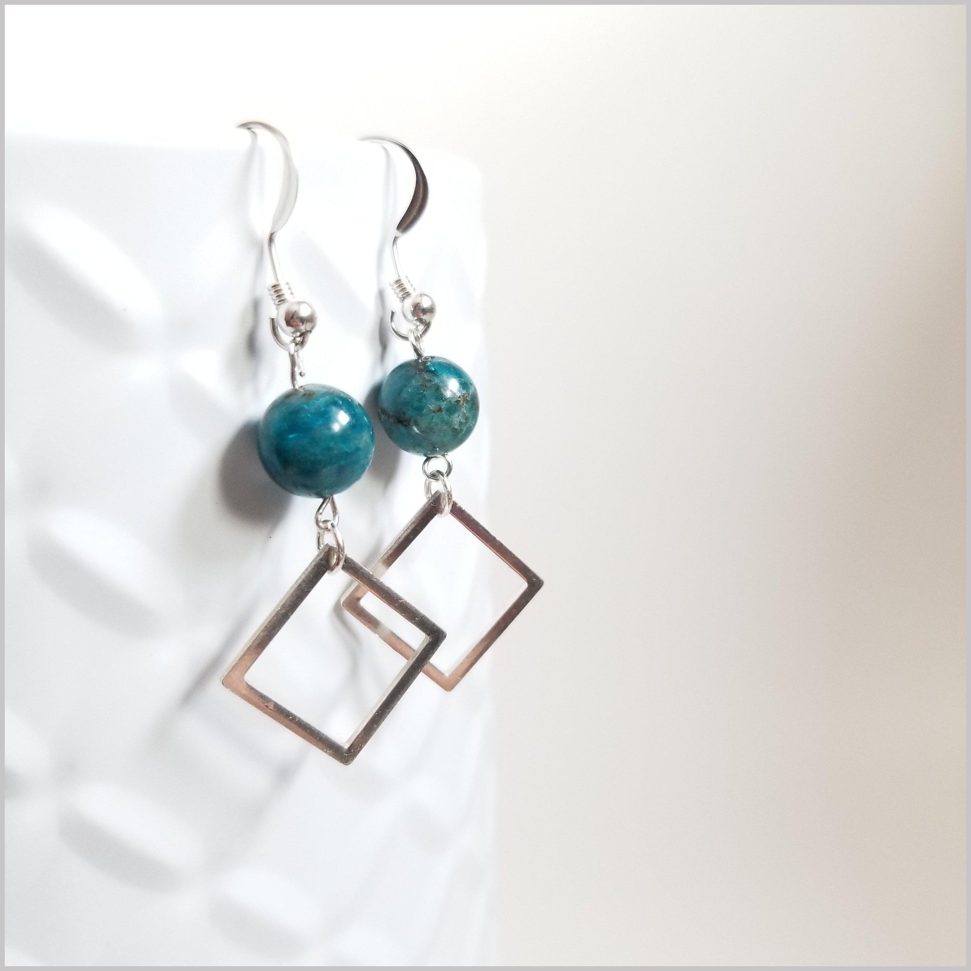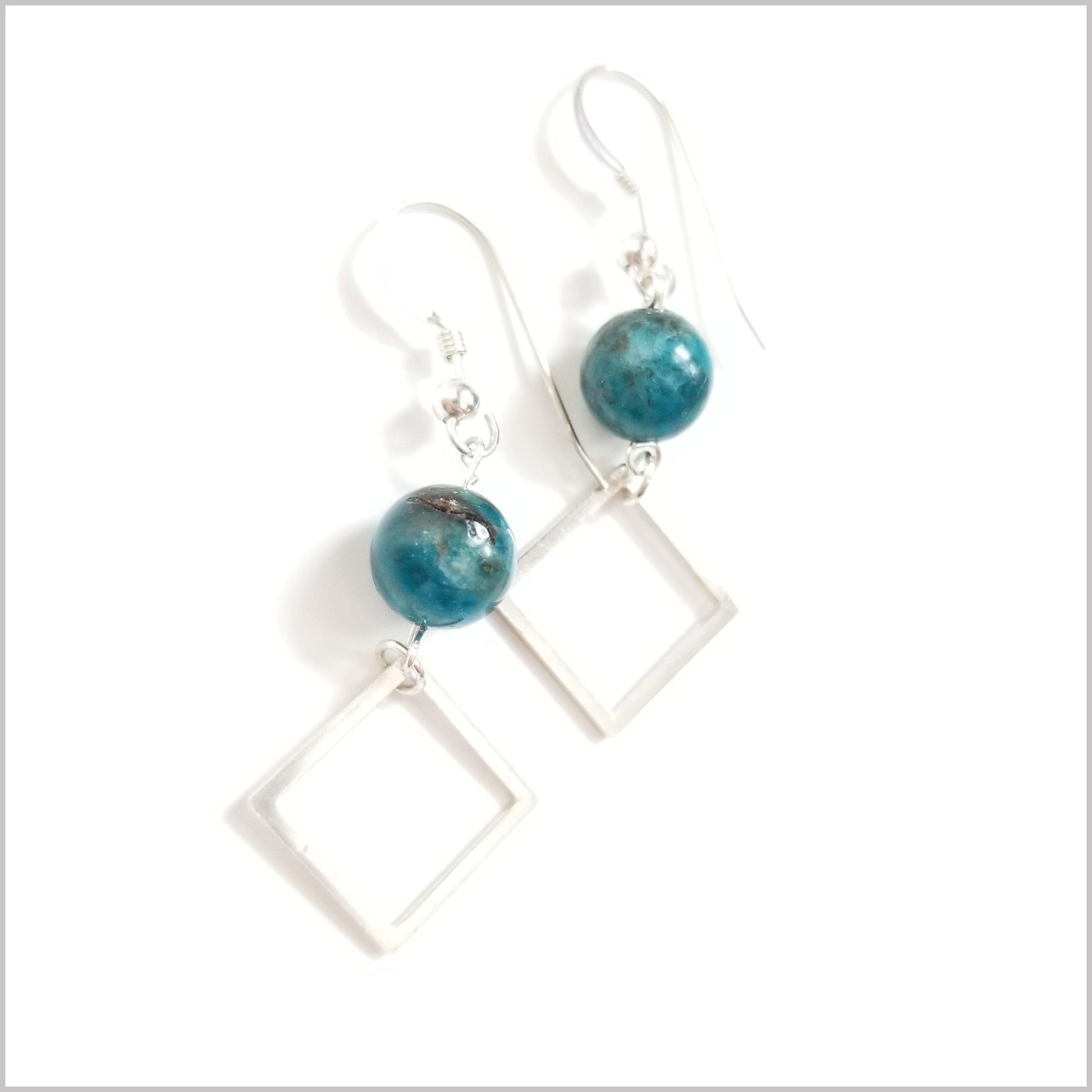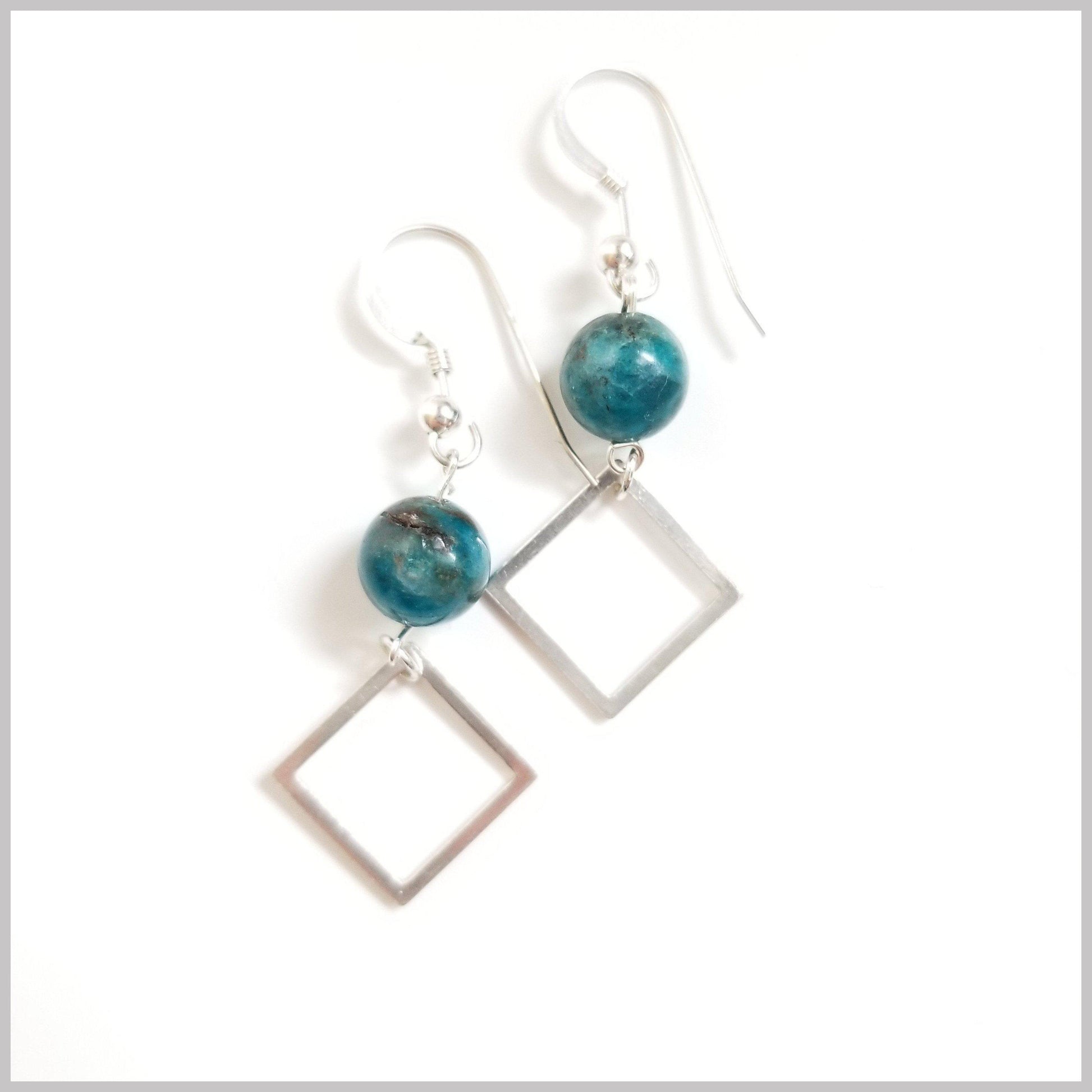 These modern dangles are handmade with natural Apatite