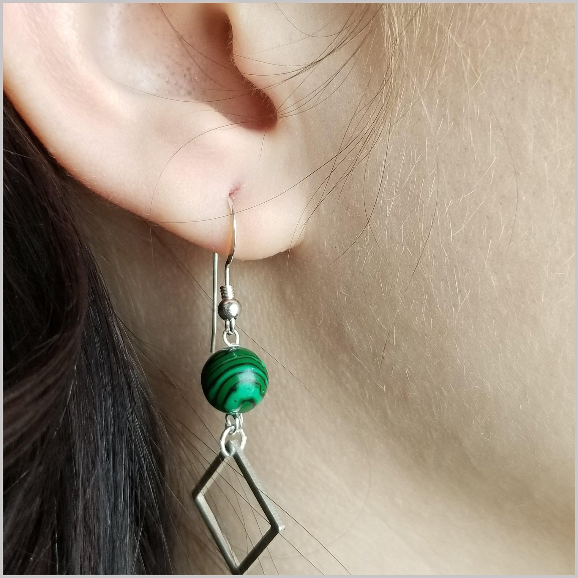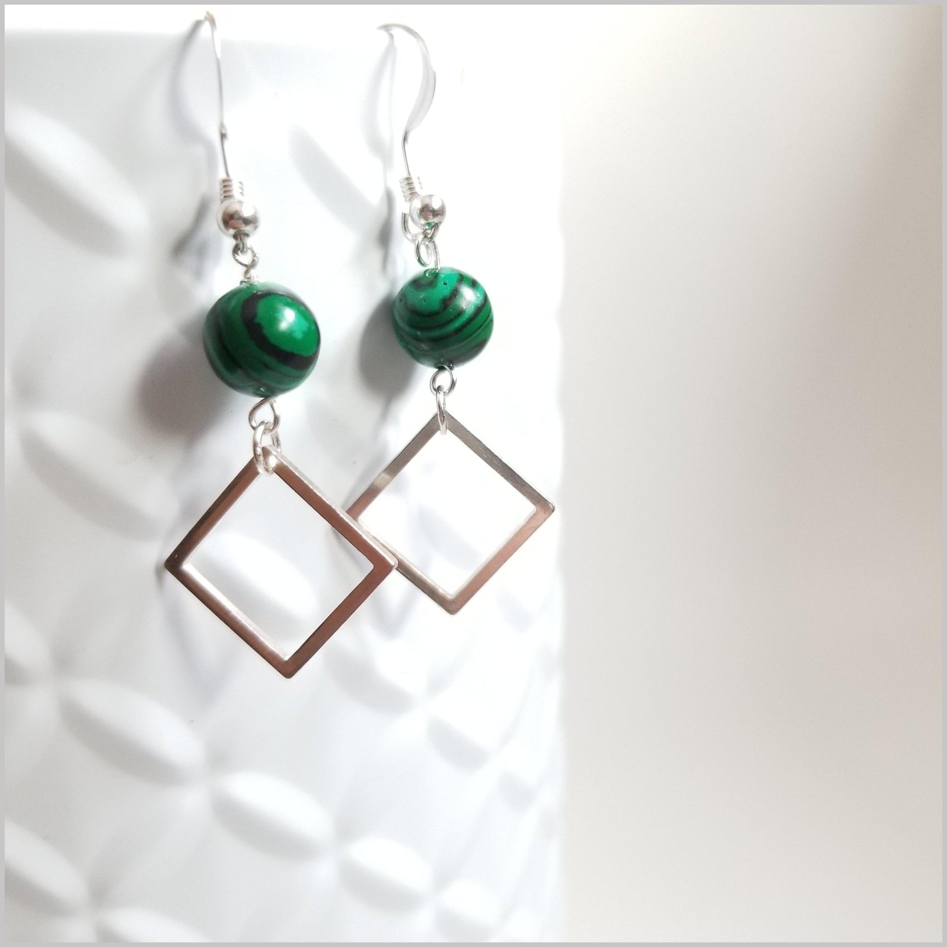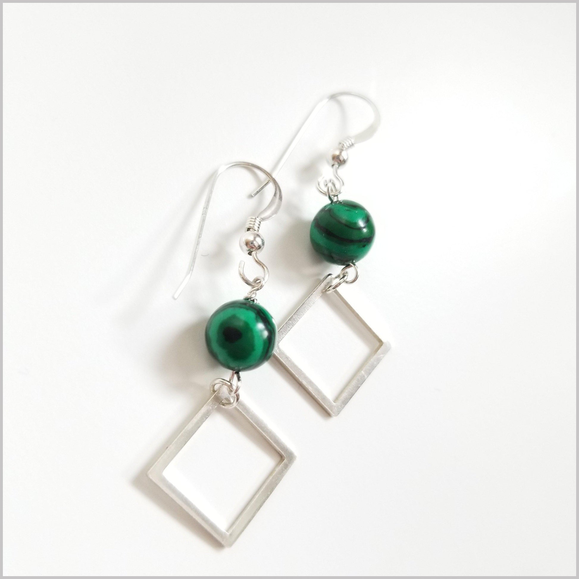 These modern dangles are handmade with natural Malachite.