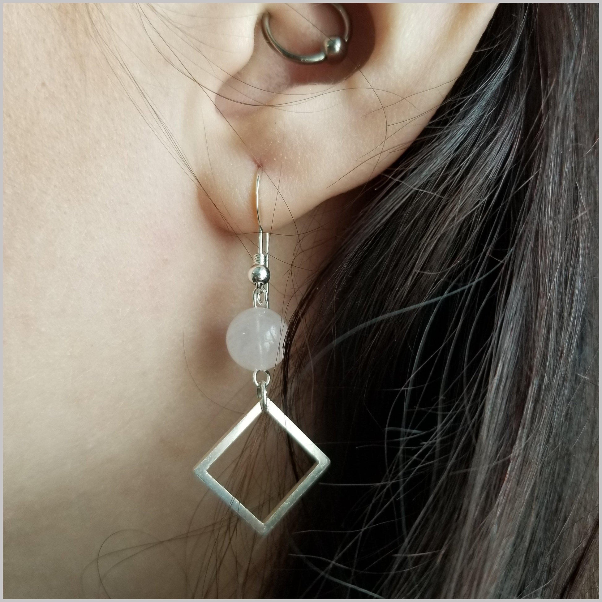 These geometric earrings showcase a variety of crystals. Combine the beautiful healing benefits of the stones with these fun and fashionable squares. You are ready to take on your everyday life with a more guided and positive outlook.